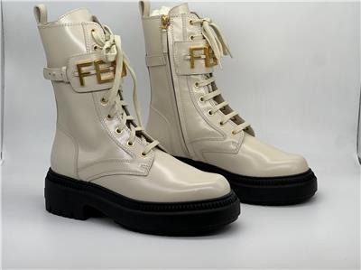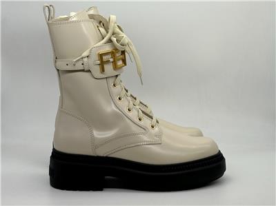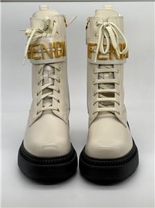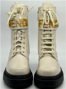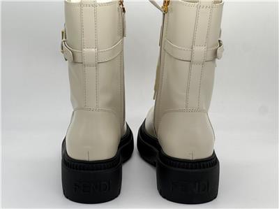 - Fendi "Fendigraphy" calfskin leather biker booties.