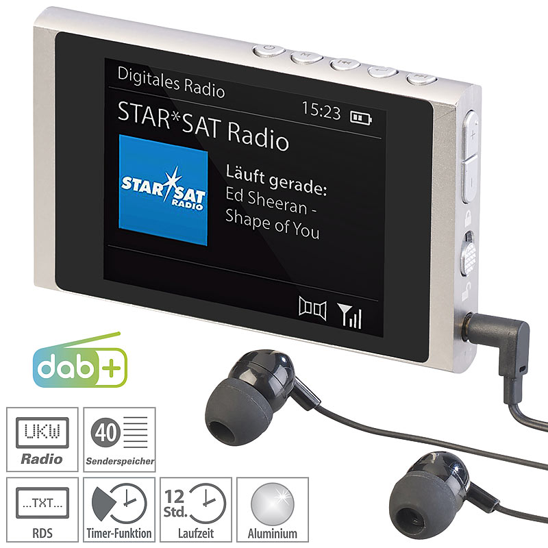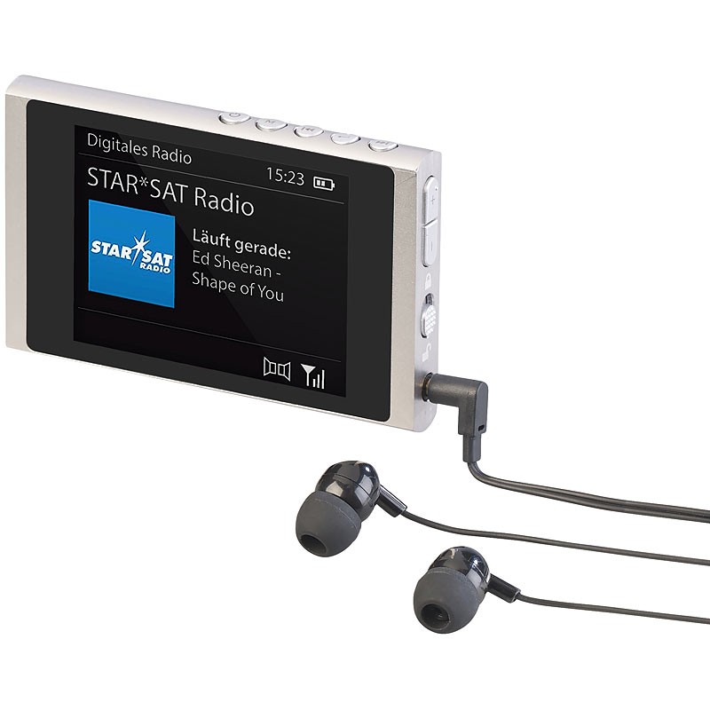 Genießen Sie auch unterwegs volle Programmvielfalt: Mit Ihrem neuen Pocket-Radio empfangen Sie überall Ihre Lieblingssender per DAB+ sowie FM. Die hochwertigen In-Ear-Ohrhörer bieten dabei ein außergewöhnliches Klangerlebnis.