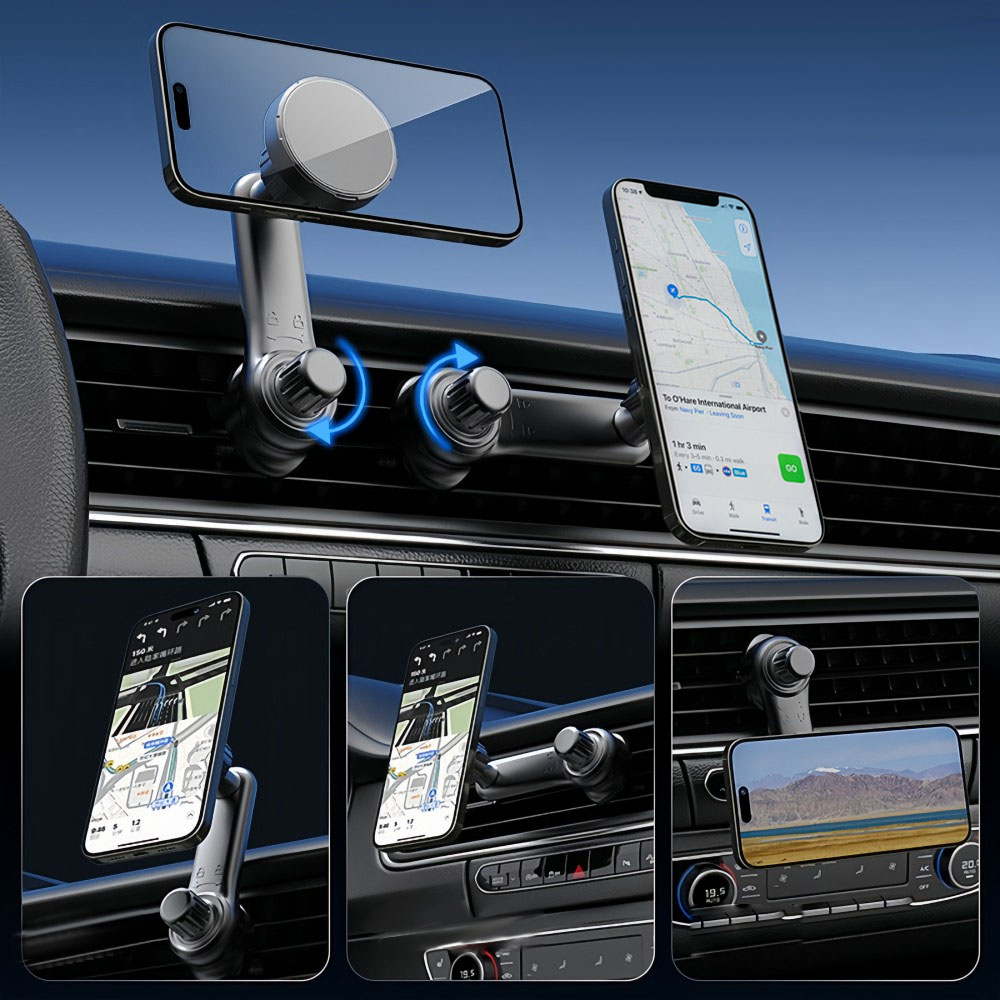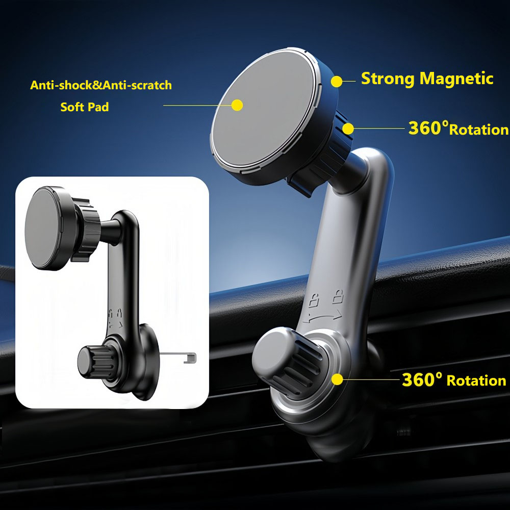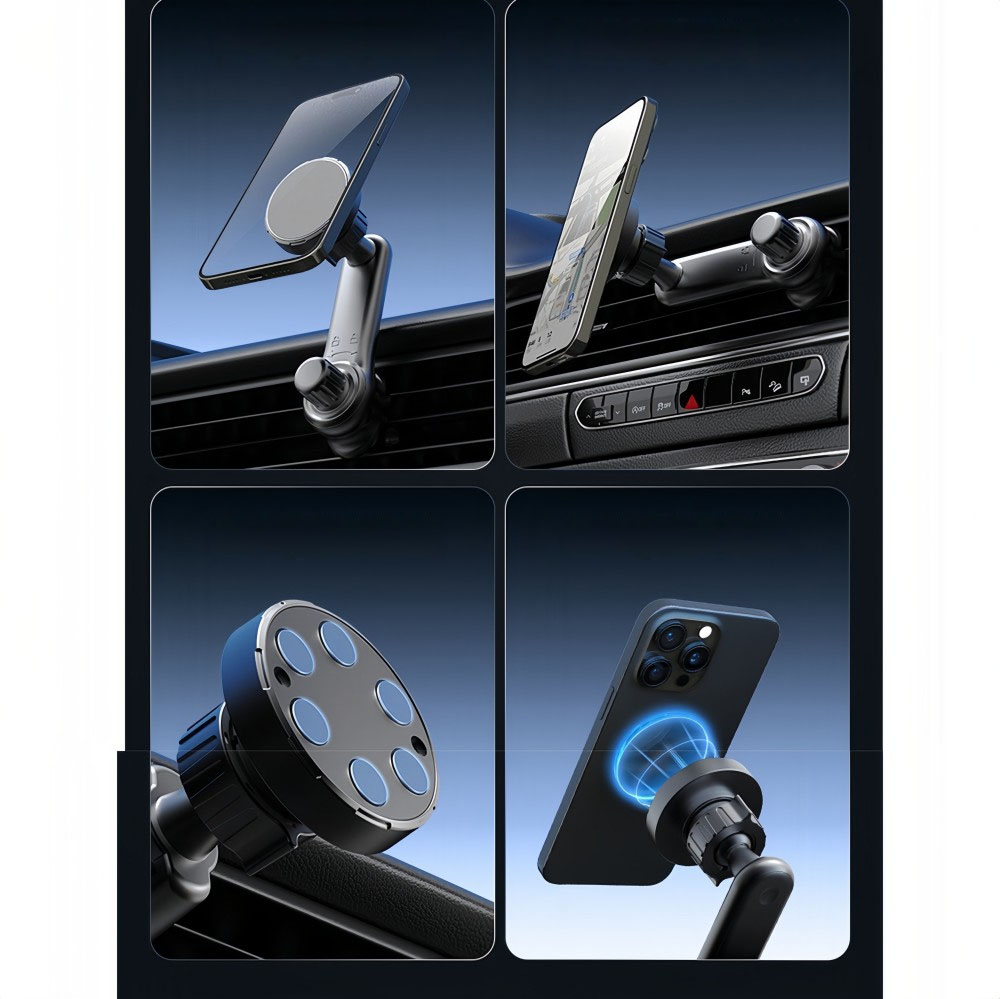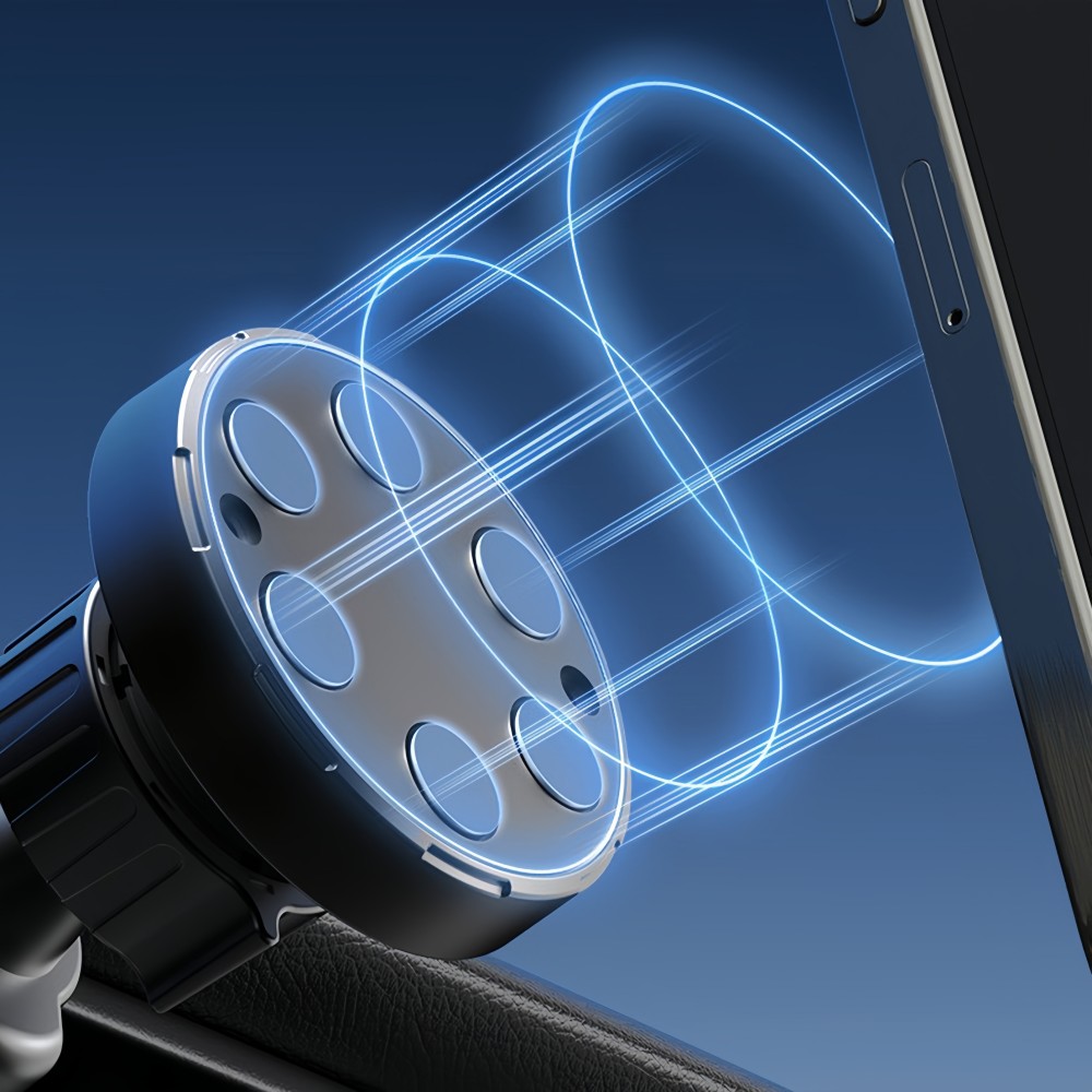 Equipped with 6 N52 high-performance strong magnets, the magnetic attraction strength is upgraded by 6 times, achieving "immediate attraction upon proximity and instant stable holding". Even when driving on rough mountain roads, unpaved roads or sudden braking and acceleration, the phone can remain firmly fixed without shaking, allowing you to focus on the road conditions ahead and driving with greater peace of mind