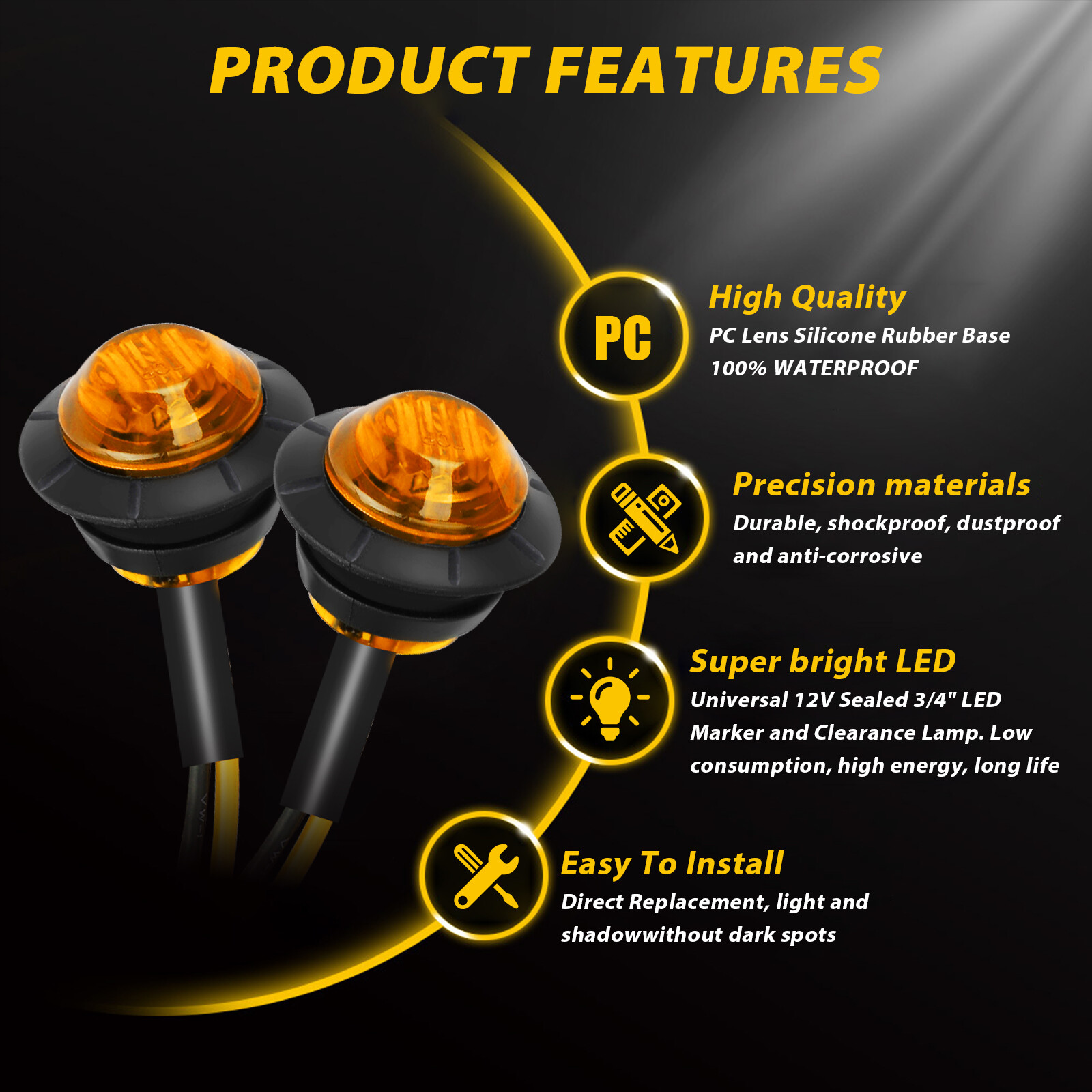 1. Marker Lights are made of ABS plastic material,waterproof Lens, sealed Light, Improve the safety of driving at night or on rainy days.