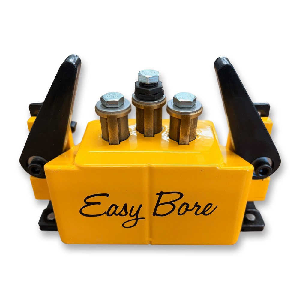 Our hand-clamped boring jig drills a 35mm hole and two aligning 8mm holes at the same setting, which allows you to accurately install your hinges with ease and speed. No screwdriver is needed to install, just a hammer to lightly tap the hinges in place. The hinges have special plastic inserts around screws which stay imbedded in wood; hinge can then be unscrewed if needed while finishing etc. The jig has adjustable stops which allow for different overlays. We use setting number 2 for 1/2" overlay, number 3 for 3/8" overlay. The cast aluminum alloy frame also incorporates a dept-adjustable carbide-tipped 35mm bit with spurs for clean holes in solid wood, veneers or melamine. The Easty Bore is a strong, versatile unit for shops of all sizes! SM923512 35mm Replacement Bit SM9700887 8mm Replacement Bit