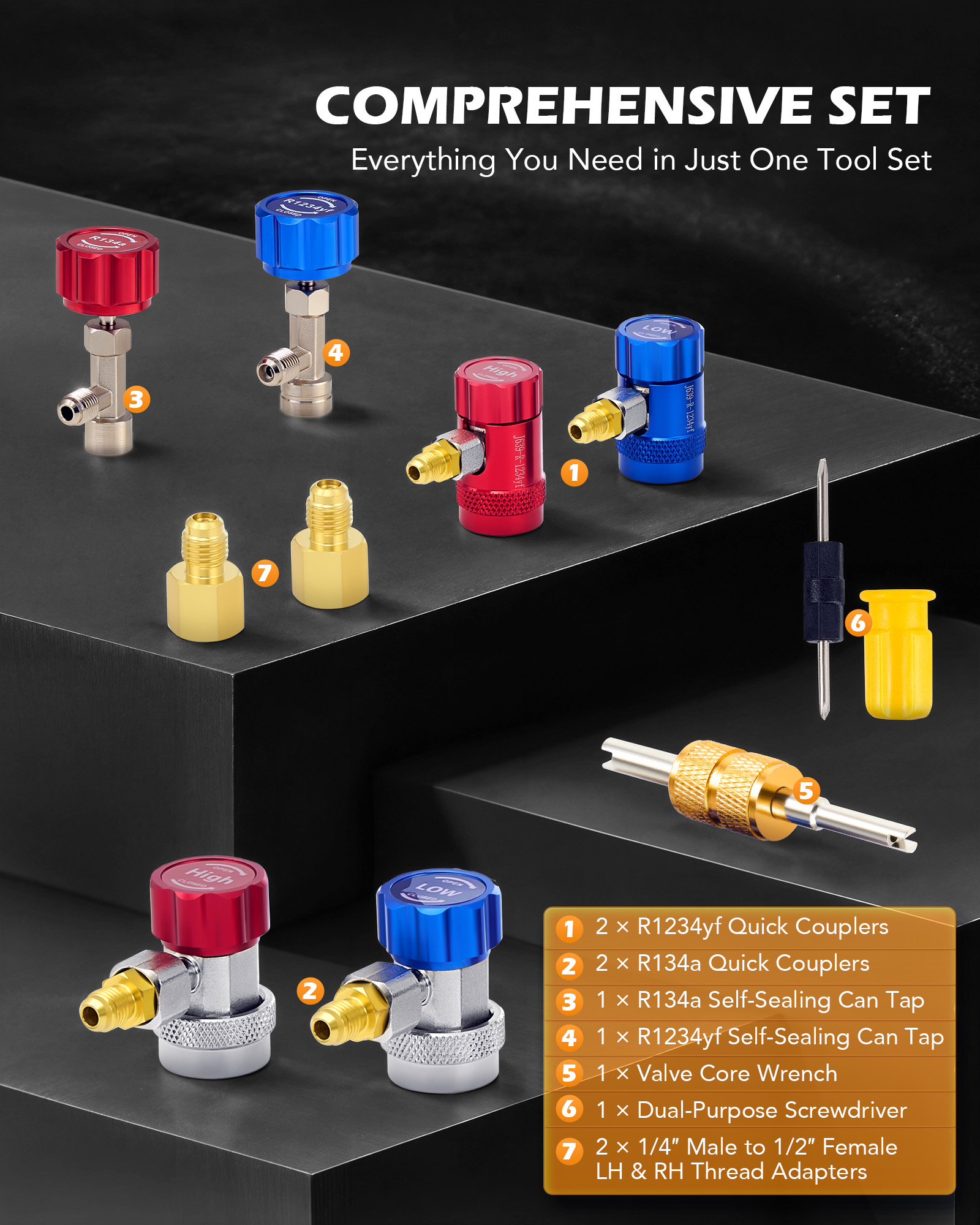 Adjustable R1234yf Couplers for R1234yf Coolant Ports