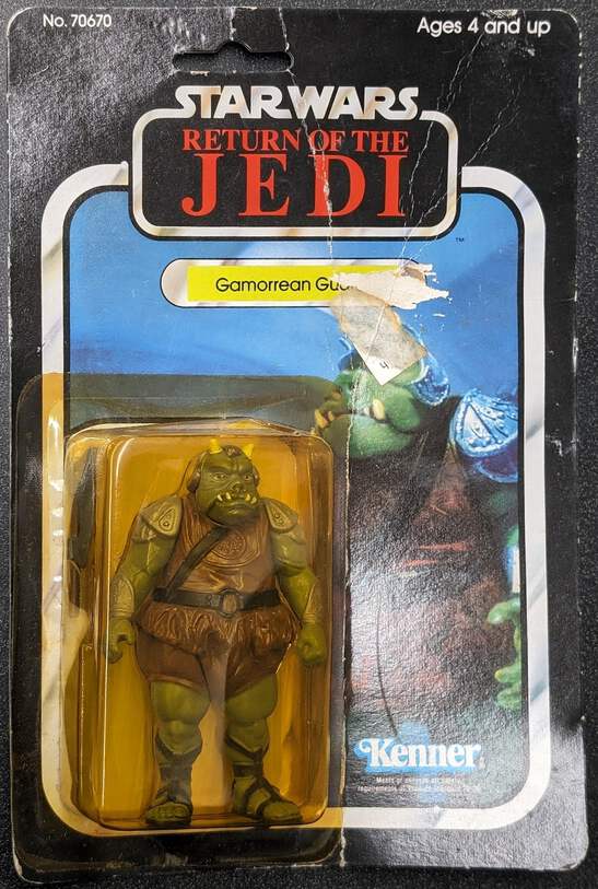 The Gamorrean Guard is a hulking, pig-like creature that serves as a guard for Jabba the Hutt. They are known for their fierce loyalty and their brutality in battle. This action figure captures the Gamorrean Guard's imposing appearance perfectly, with its detailed sculpt and its realistic paint job. This figure is perfect for recreating your favorite scenes from Return of the Jedi, such as the Battle of Jabba's Palace or the Emperor's throne room scene. It is also a great addition to any Star Wars collection.