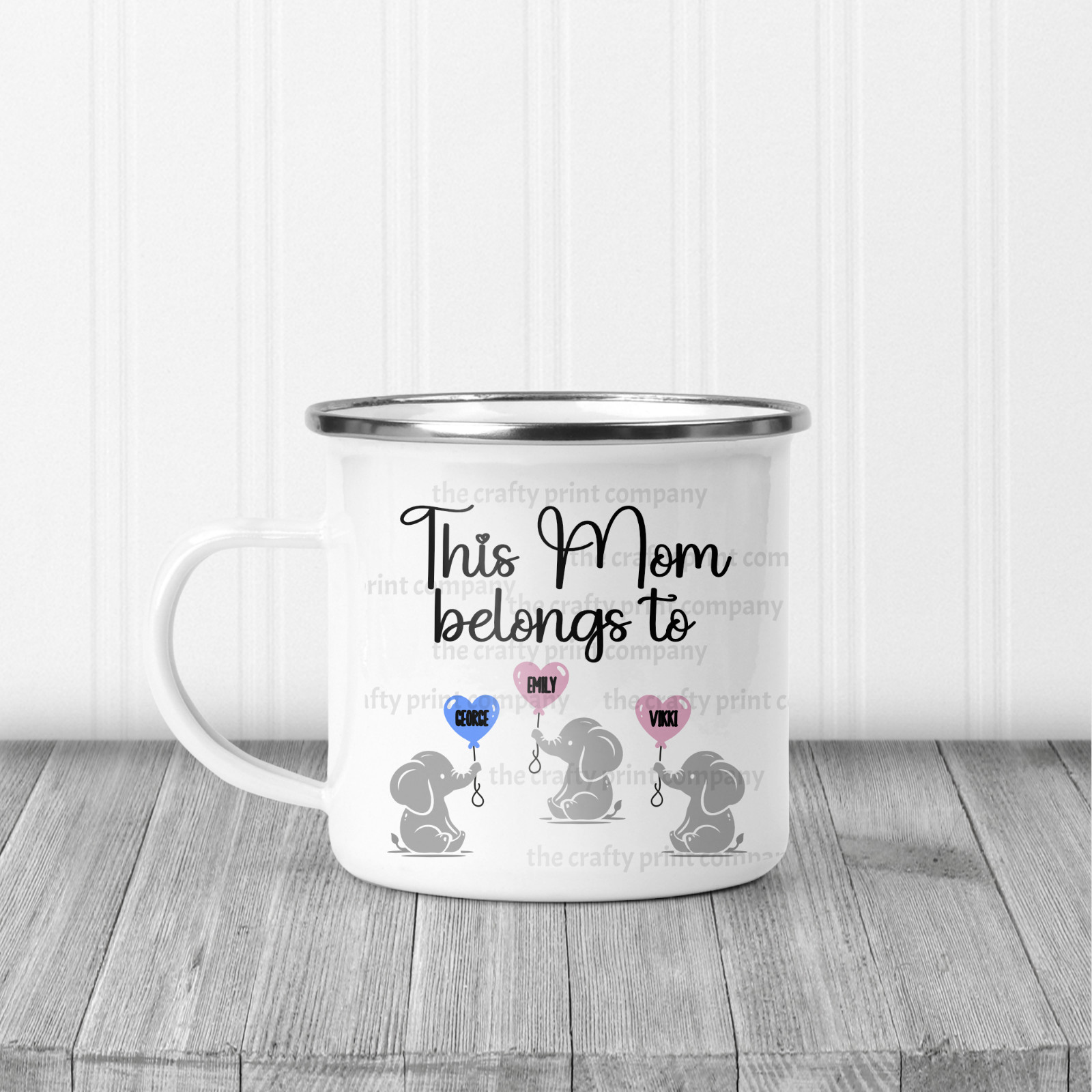12oz enamel mugs with silver rim.