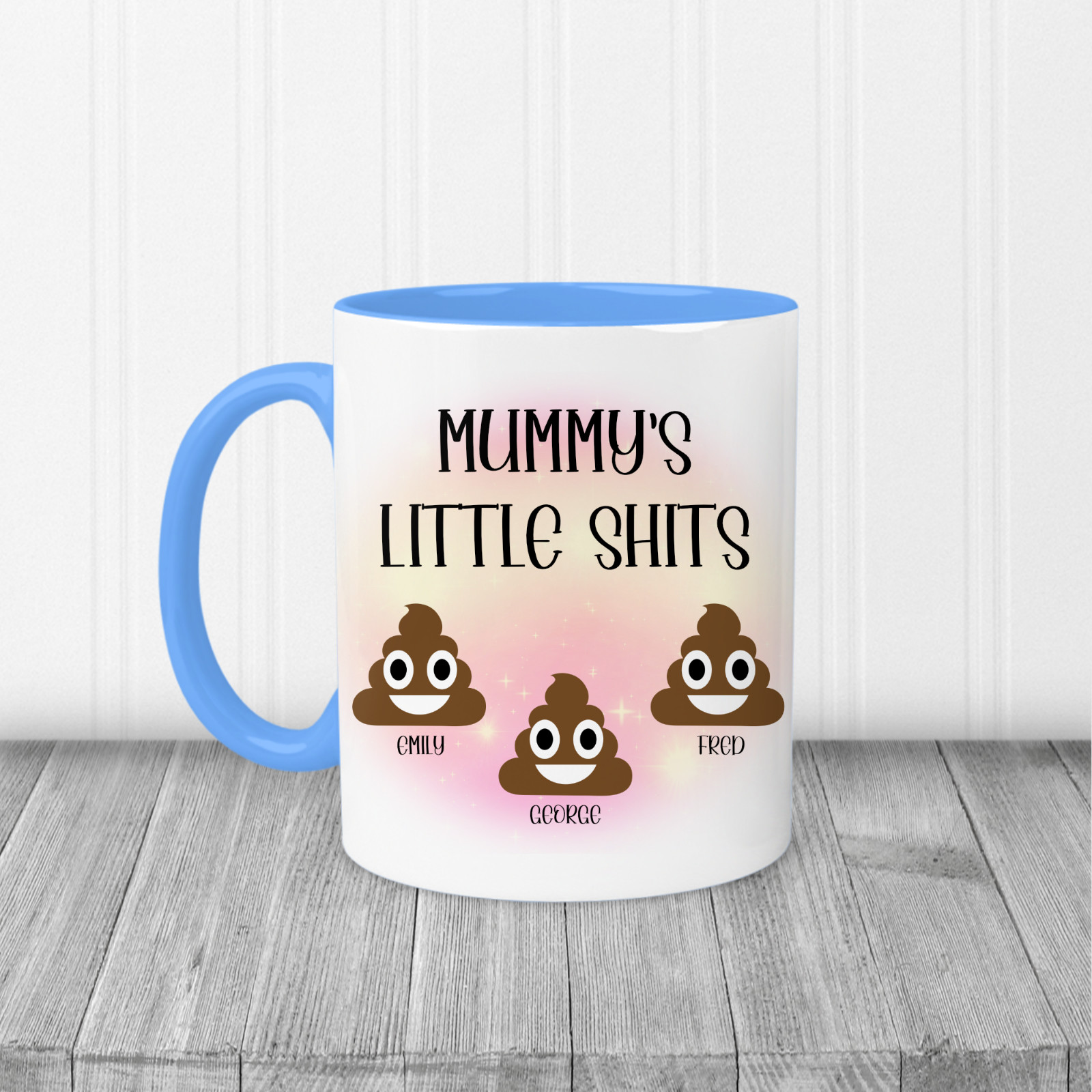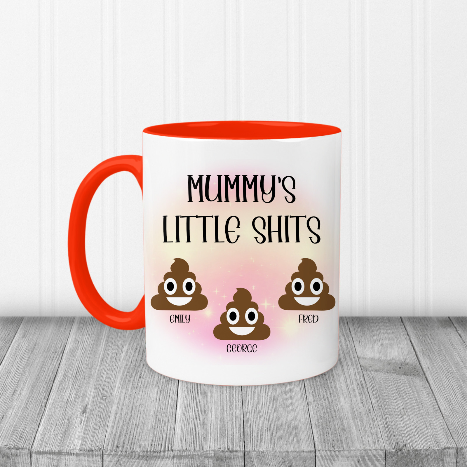 Black, Light blue, Red and Pink or you can choose just a plain white mug. 11oz