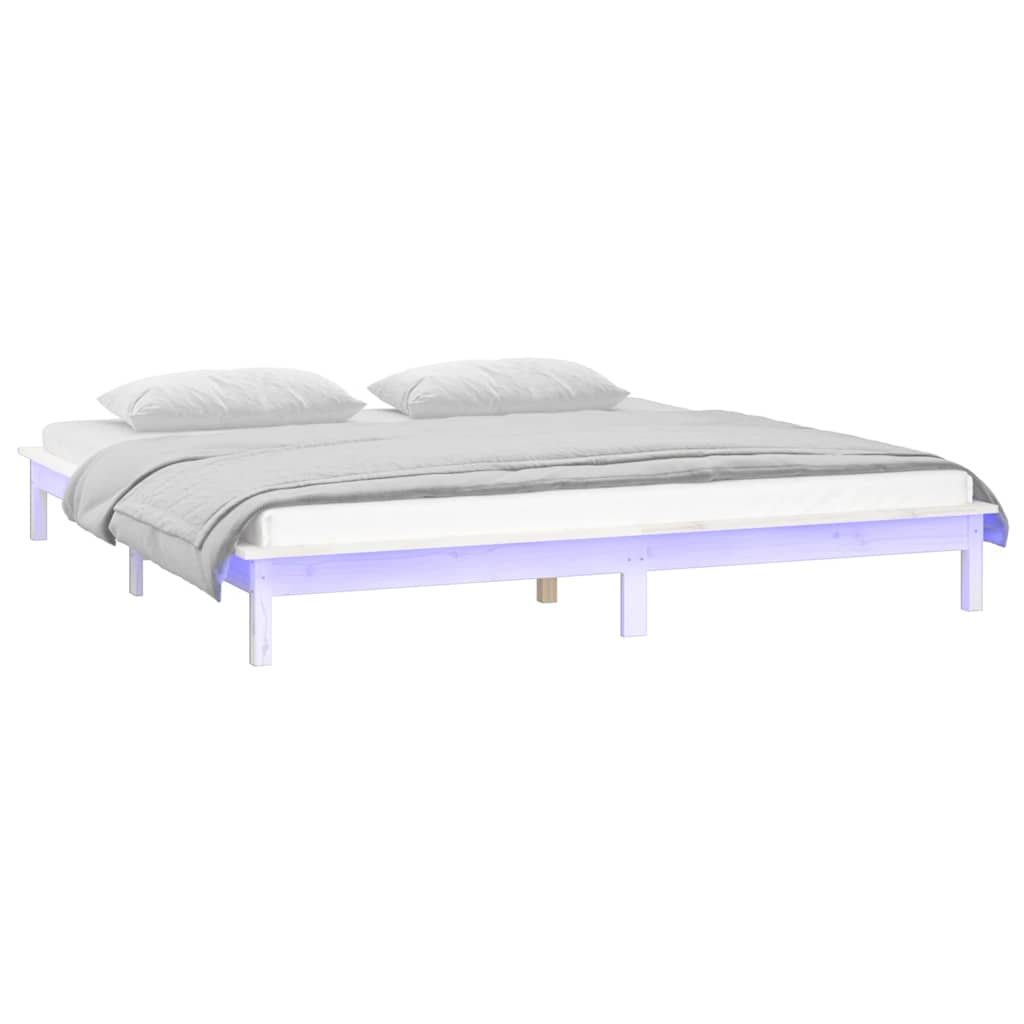 This wooden bed frame with LED lights, featuring a simple yet timeless design, makes a truly practical and decorative addition to your bedroom.