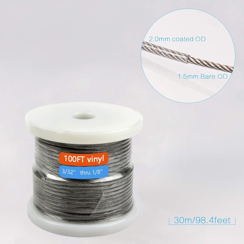 ♧【1/16 Stainless Steel Cable】-- Vinyl Coated Tension Wire Cable 1/16 made of 304 stainless steel,cable bare OD is 1.5mm,Coated OD is 2mm; 7x7 core construction consisting of 7 groups of 7 strands braided together making it stronger use for indoor outdoor, offer corrosion resistance, durability and strength rather than galvanized wire,provide longer service life on project.