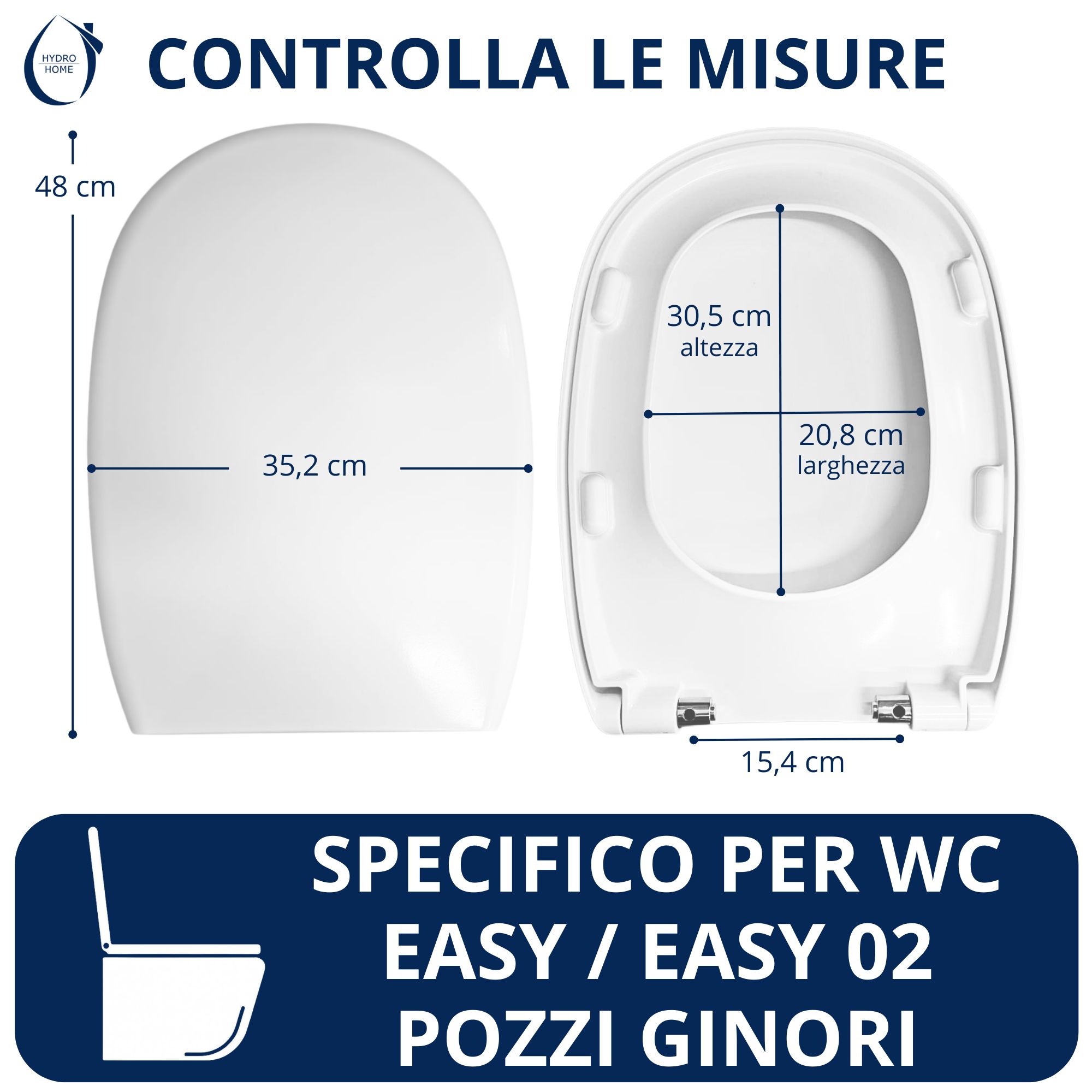 Il copriwater dedicato Easy Pozzi Ginori Soft Close di Hydro Home è progettato per offrire una compatibilità perfetta con i modelli Easy ed Easy 2 della ceramica Pozzi Ginori.