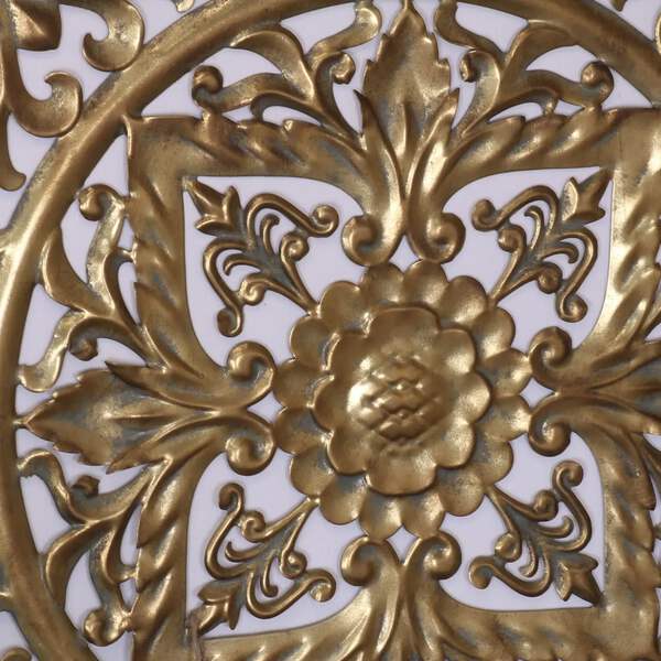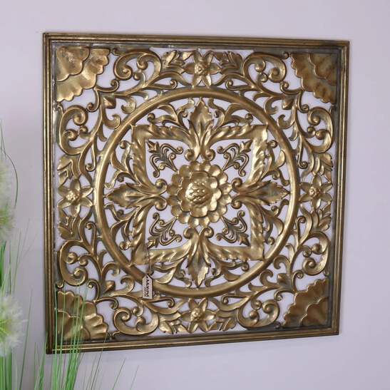 Introduce a touch of splendor to your home with the Talwara Filigree Gold Wall Art Metal. Perfectly square, this piece blends the boldness of modern design with the intricate beauty of vintage filigree, crafted from metal with a luxurious gold finish.