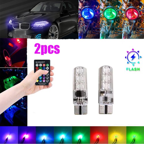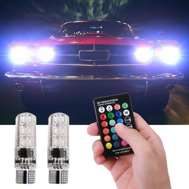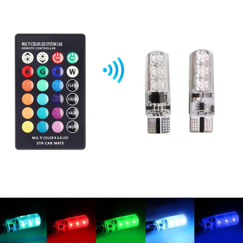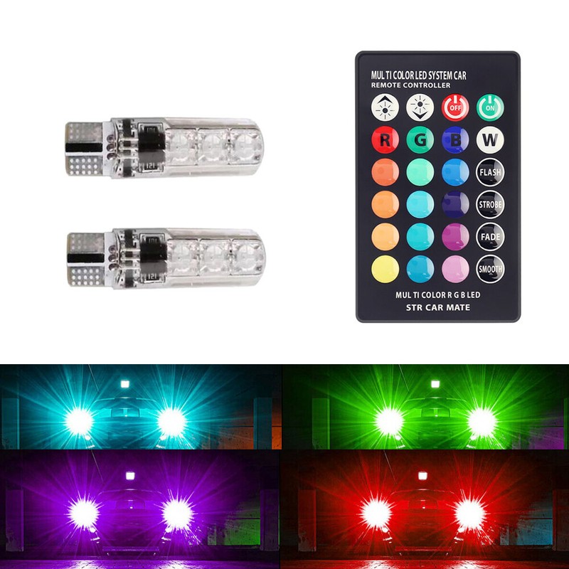 Multi-Color RGB LED Bulbs w/RF Remote-Control For Car Parking Lights 168 194 T10