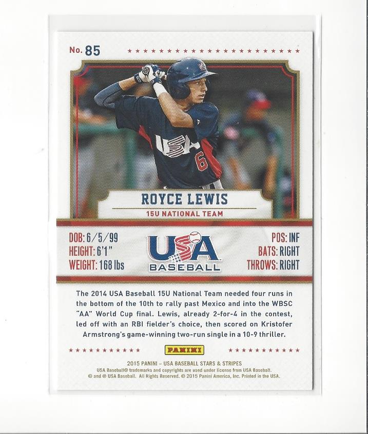 2015 USA Baseball Stars and Stripes Longevity #85 Royce Lewis Rookie Twins