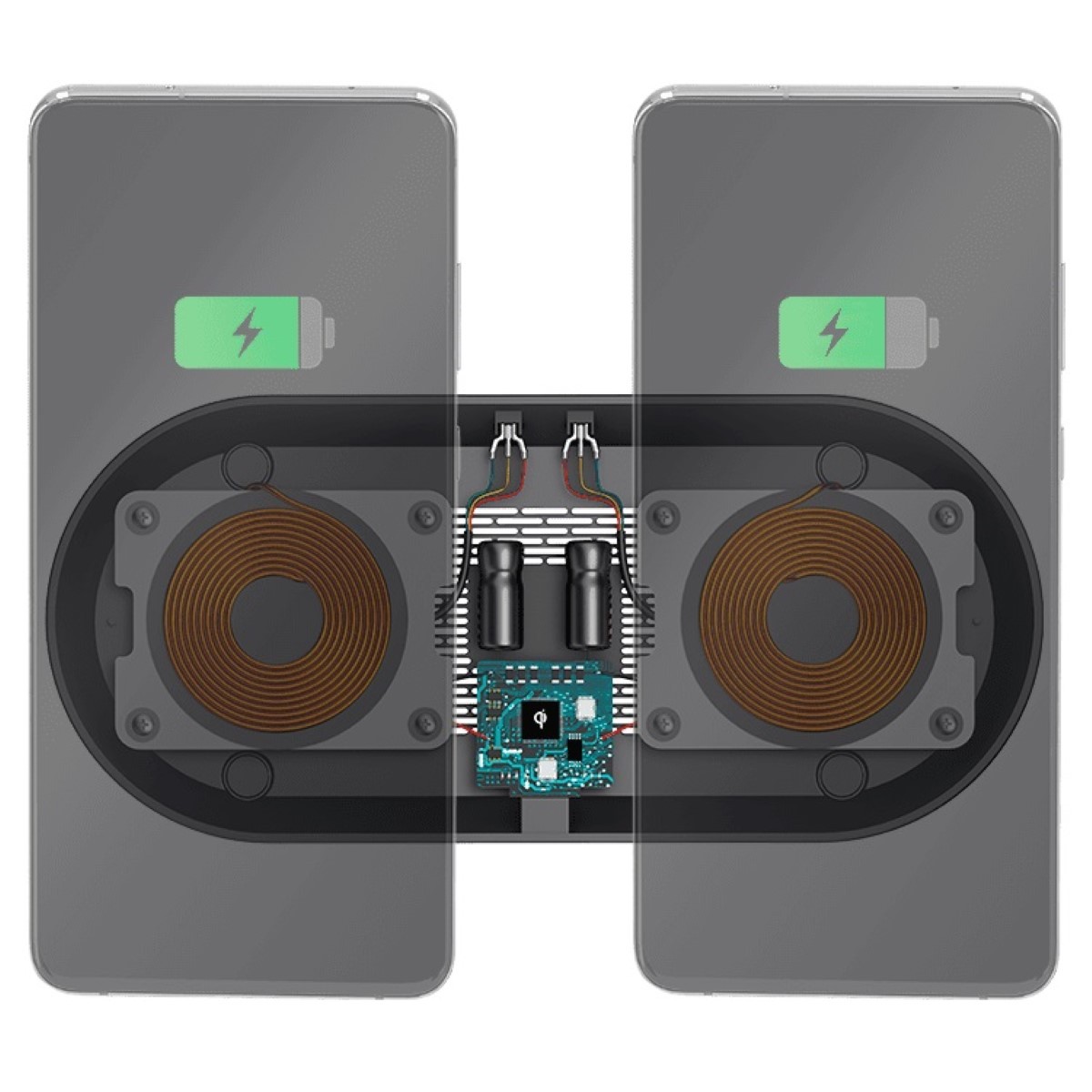 Lieferumfang: Kabelloses Ladegerät "QI-FC10 DUO", Steckernetzteil, Bedienungsanleitung
