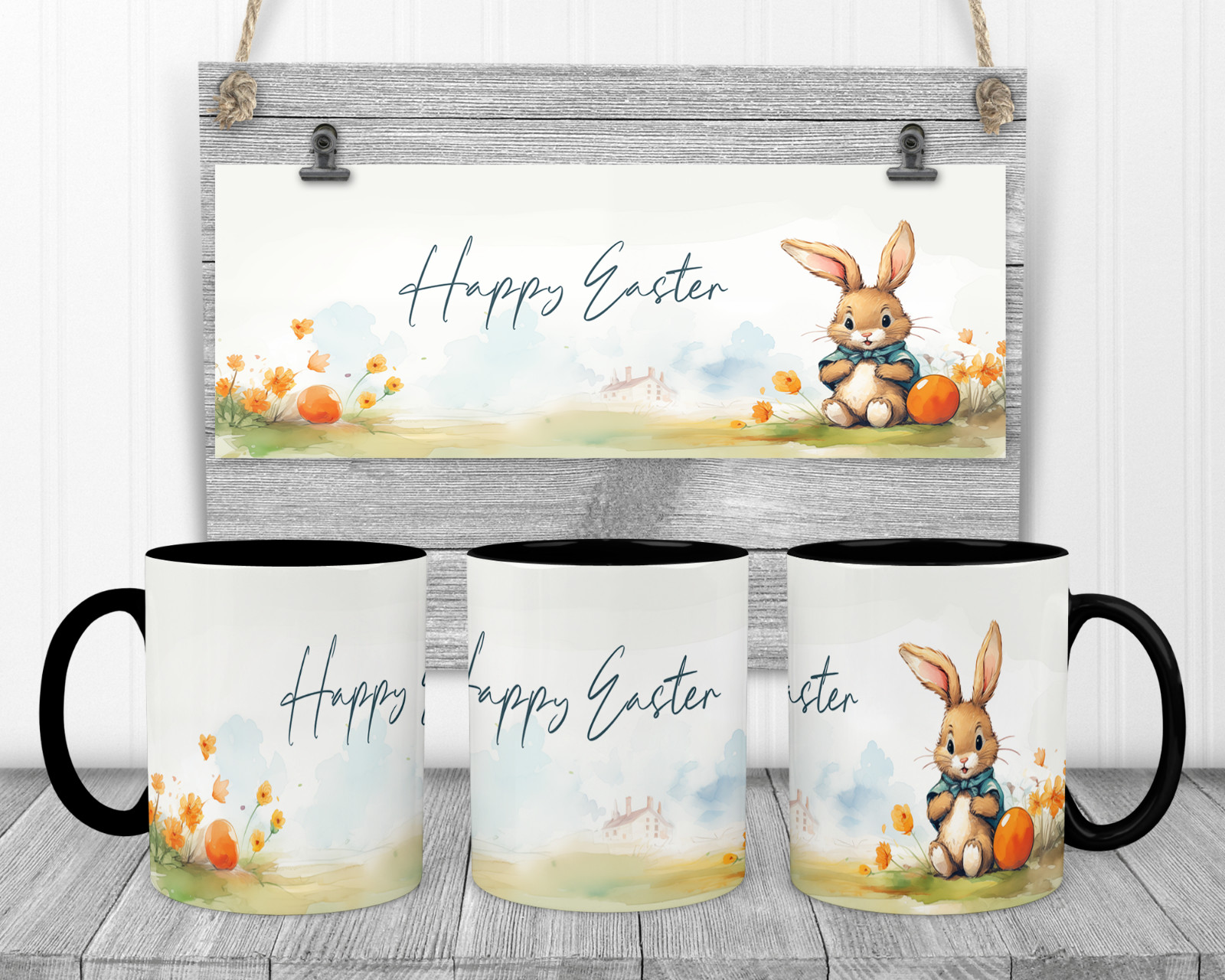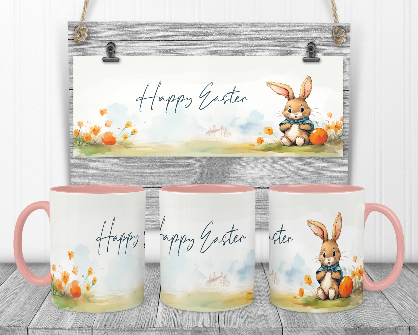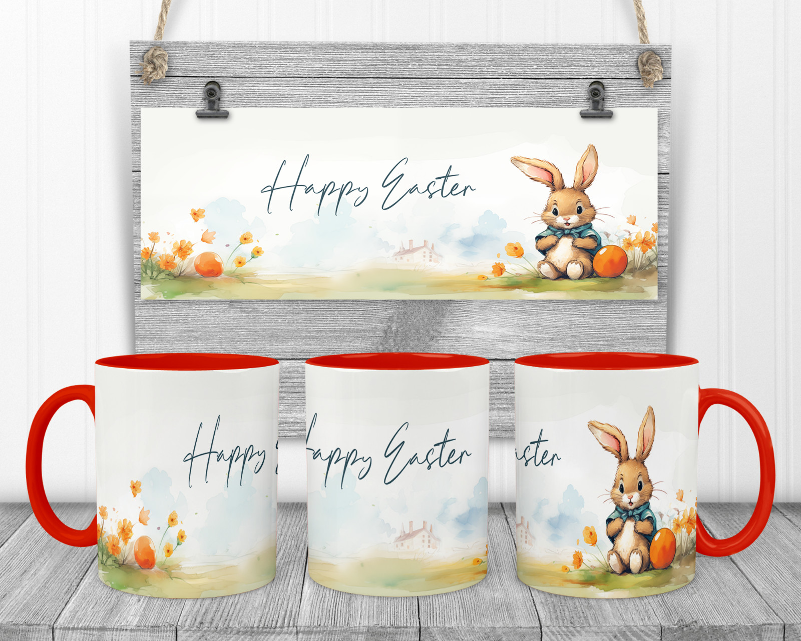 This mug is great to buy for an Easter GiftIdeal to give this as a present.They are a white mug with coloured handle and inner there are 4 colours to choose from Black, Light blue, Red and Pink or you can choose just a plain white mug. 11ozWhite mug with coloured handle and inner 4 colours to choose from or a plain white mug.Design on both sides of the mug Orca Coating Premium grade 11oz Bright white glossy finish Dishwasher & Microwave safe Posted in Smashproof cardboard boxDimensions approx Height 91mm Outside Diameter: 80mm Have a look at our website for a bigger range If you require a mug with something else on please feel free to contact us with that you want and we will do our best to get it done for you!Pictures are for illustration purposes only.