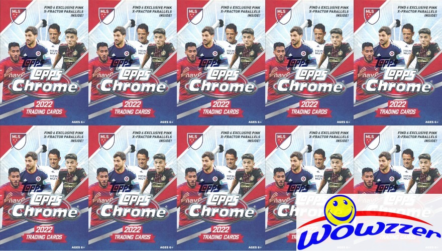 Wowzzer! Brand New and Super Hot! We are Proud to offer this Lot of (10) 2022 Topps CHROME MLS Soccer EXCLUSIVE Factory Sealed Blaster Box! Each Exclusive Factory Sealed Blaster box includes 6 Packs and 5 Cards per Pack including (6) EXCLUSIVE PINK X-FRACTOR PARALLELS! Topps Chrome hits the pitch for the second year, with this all-new 2022 Topps Chrome Major League Soccer release, featuring all the top stars and rookies from throughout MLS. Collect the entire 200-card Base Set and look for a variety of color parallels and exciting new inserts such as 1959 Topps Football and Field Tested in every box! Look for Loads of Refactor and Parallels Included Base Set Autograph Parallels! This Product is Loaded! Good Luck with your Pulls!
