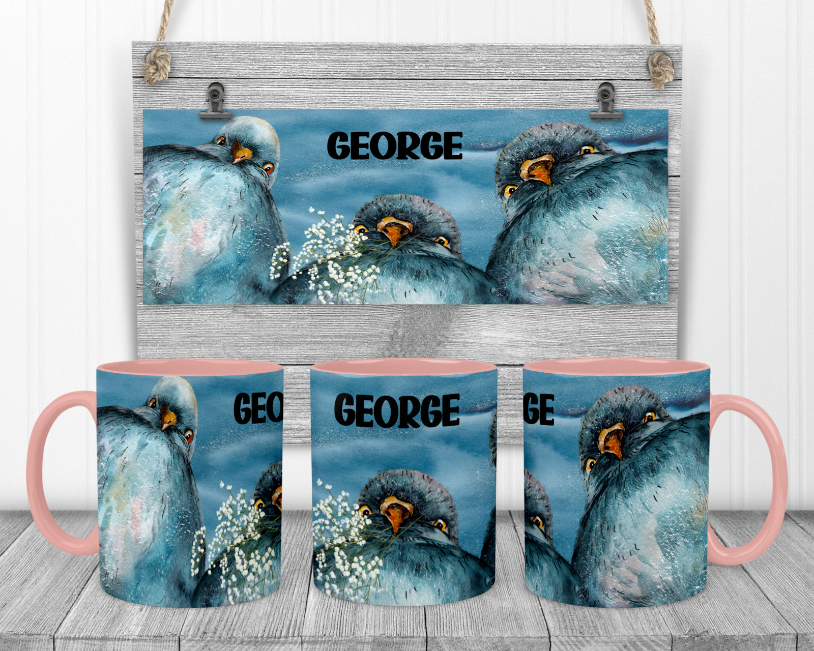 Black, Light blue, Red and Pink or you can choose just a plain white mug. 11oz