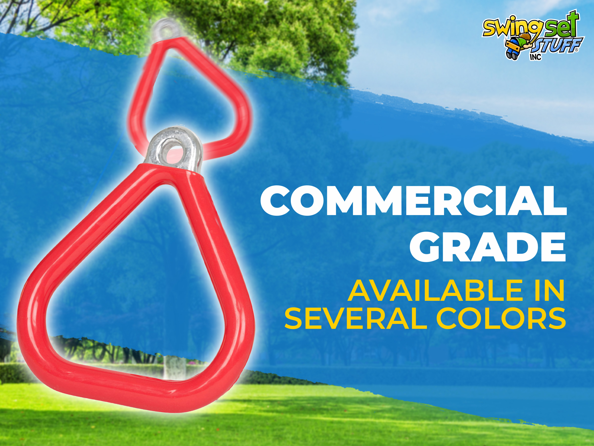 These commercial rings are sold in pairs. Because they have eyehooks, they can be attached easily to trapeze chain with S-hooks which we also carry both the trapeze chain and the S-hooks. Whether you choose the triangle or round rings, commercial or residential, we will have the right trapeze rings for you. Are these trapeze rings everything you’ve been looking for? Then come order yours today!