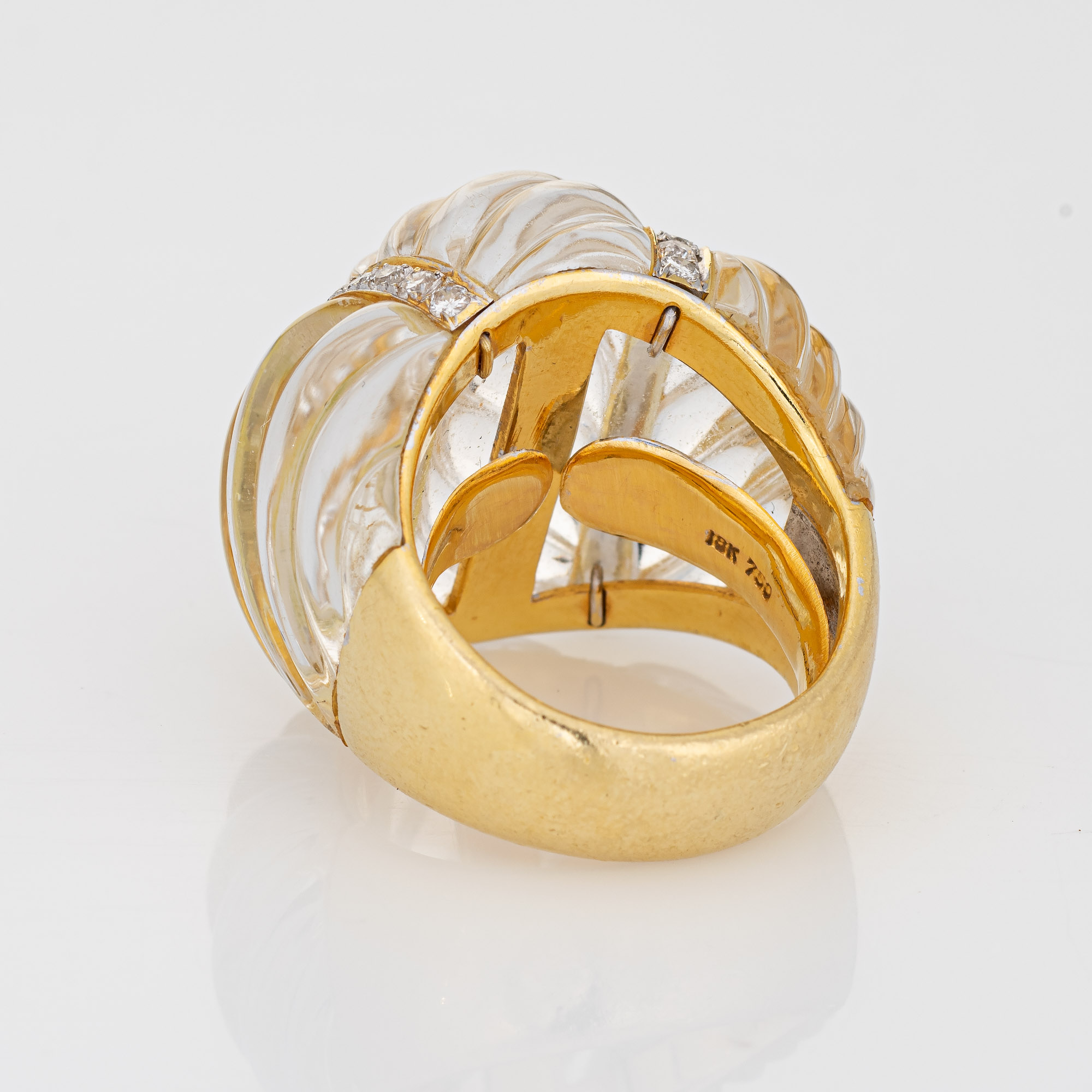 Fluted Rock Crystal Diamond Ring Dome Cocktail Vintage 18k Gold Jewelry Sz 7