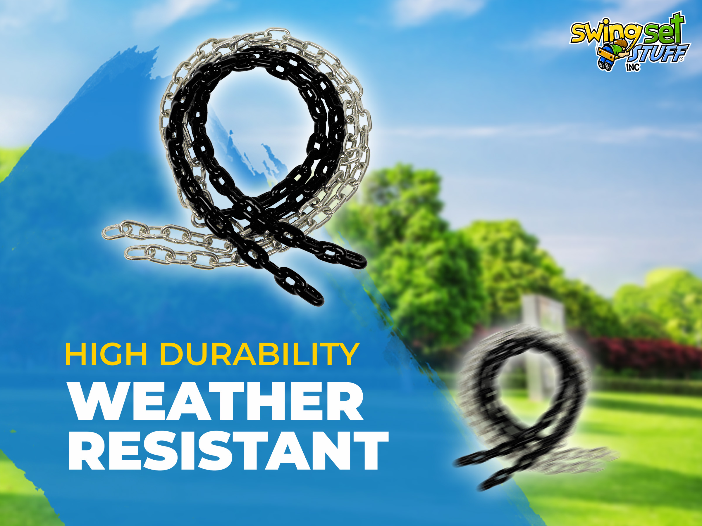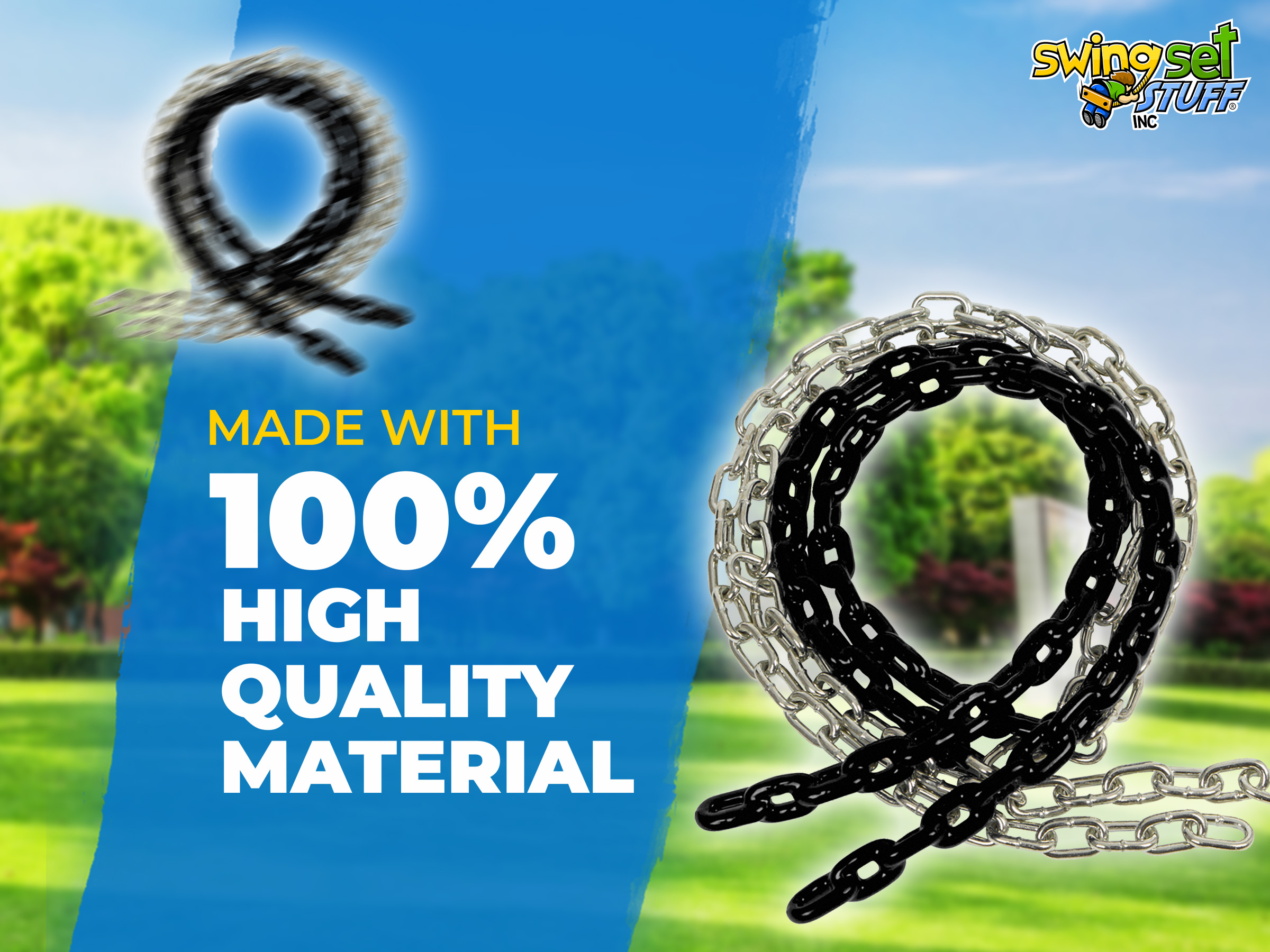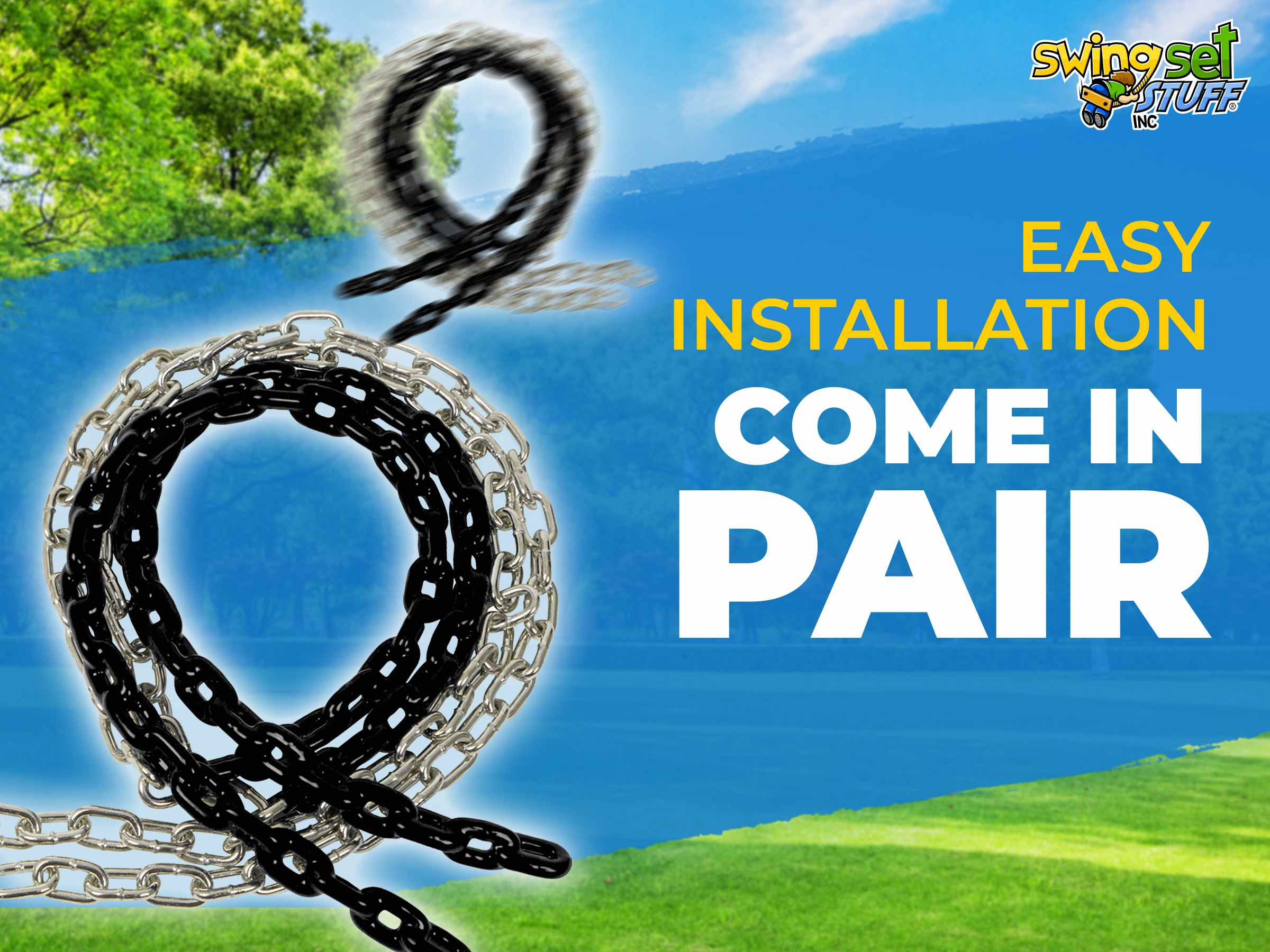 This 8 1/2 ft. swing chain will help add color to your swing seats. These are made so your child's hands will be pinch-free and are a perfect fit. They are zinc plated links to help prevent rust and vinyl coated. Chain is 3/16" in diameter. Made for commercial and residential use these coated chains are extremely durable. They come in pairs.