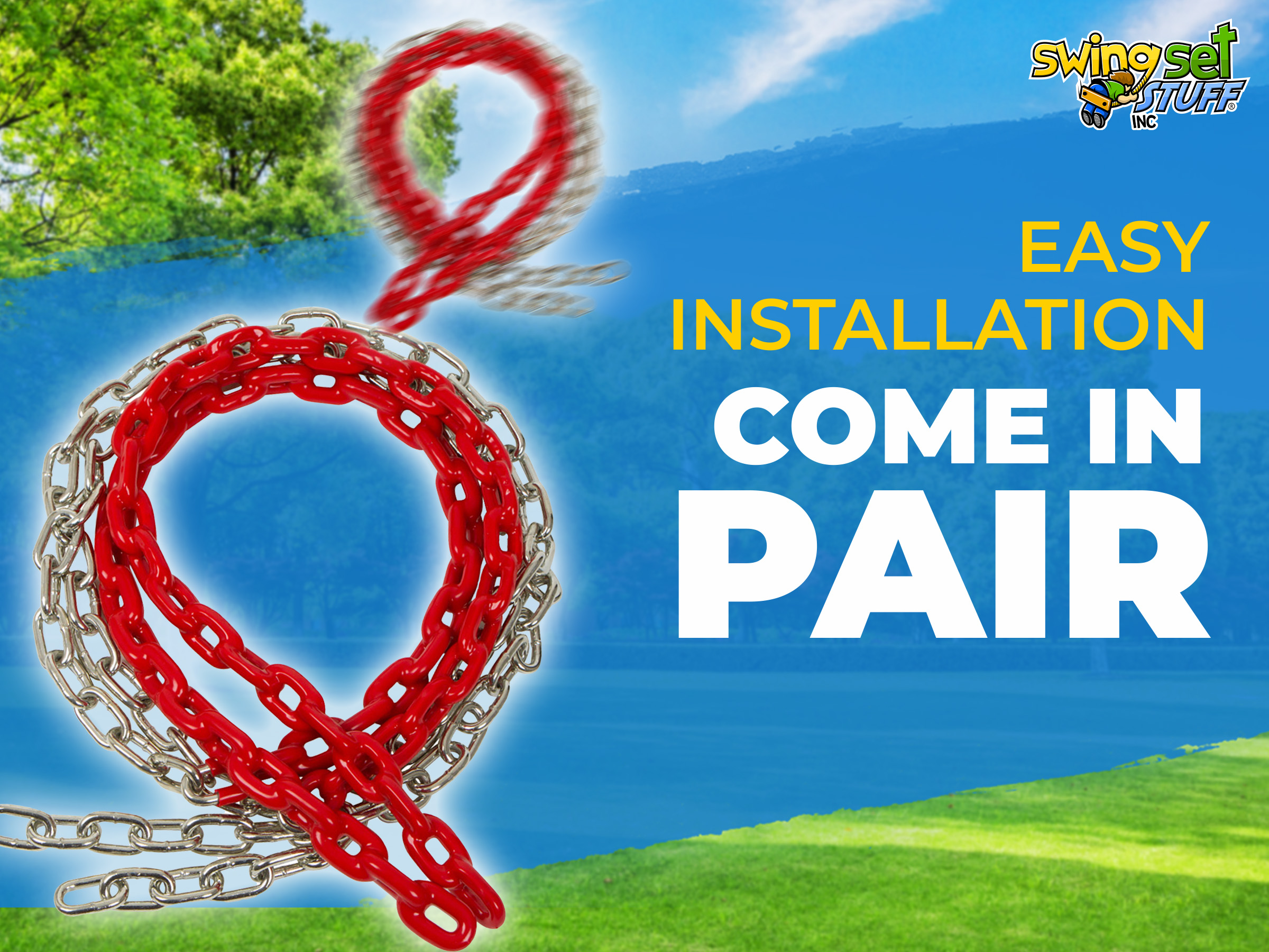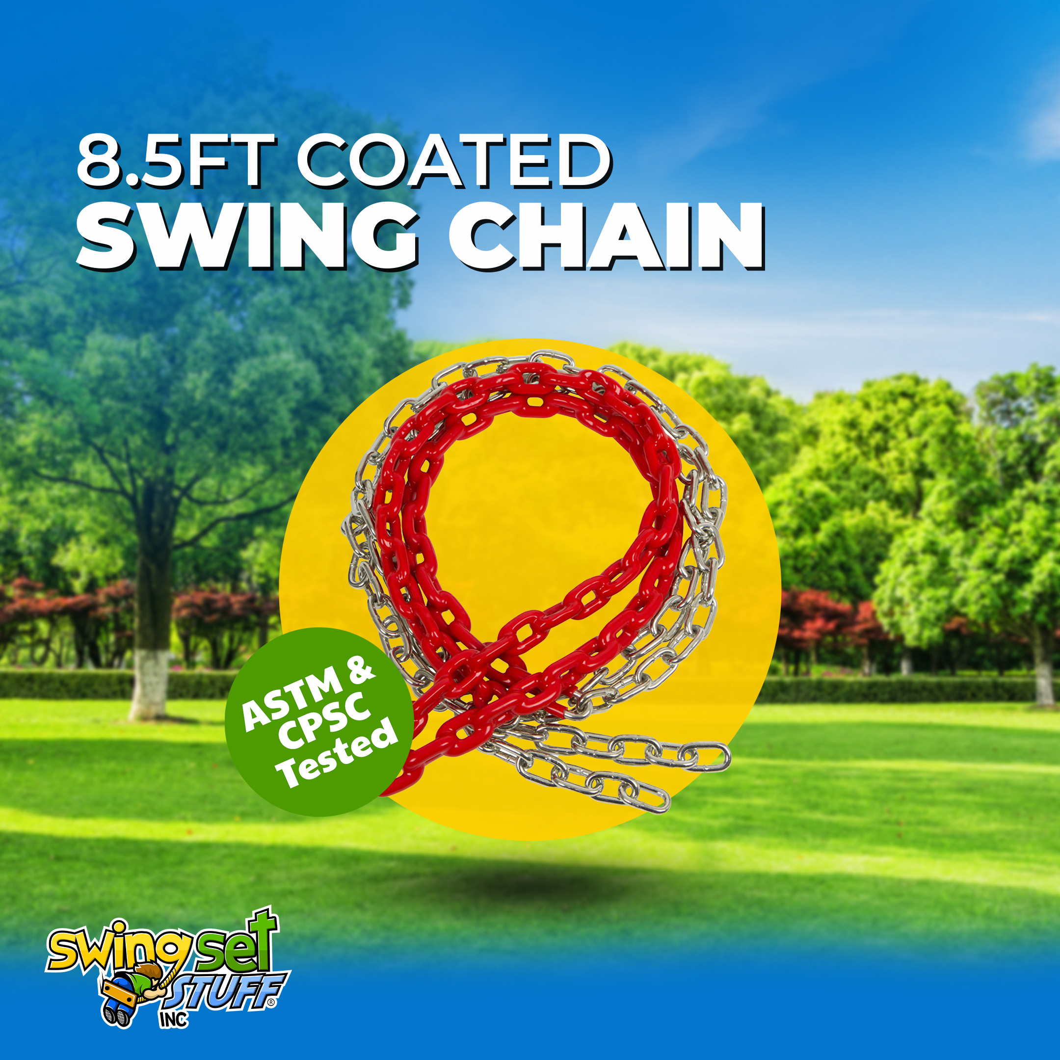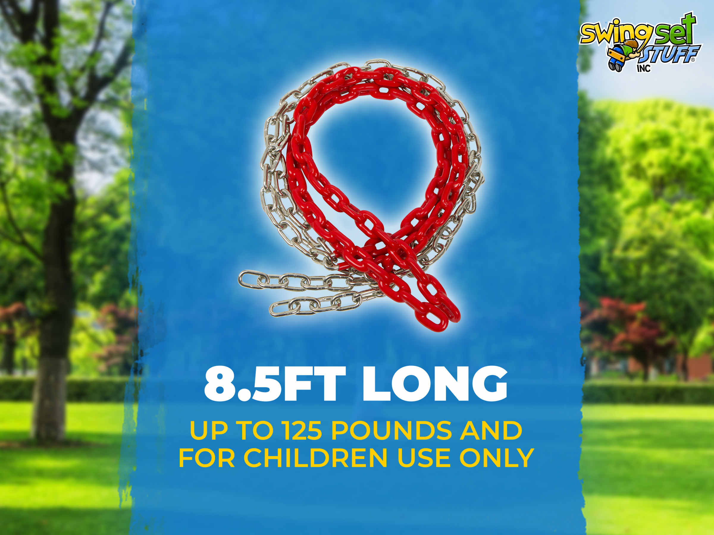 This is for a pair of 8 1/2ft coated Red swing chain. The coating covers 2 ft. 6 in. of the chain. Please visit our Ebay store for additional colors and products. Chain is 3/16" in diameter.