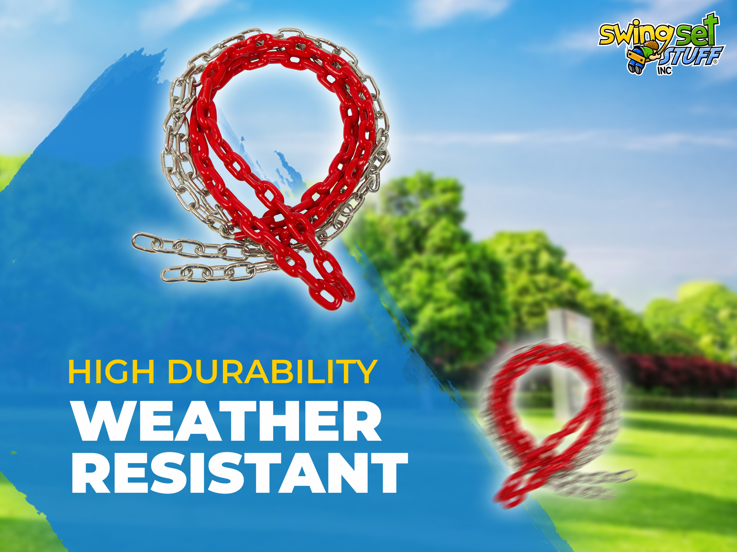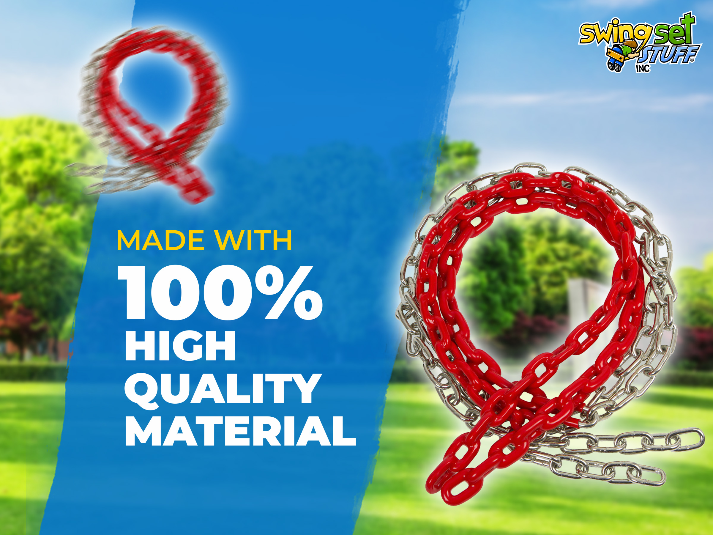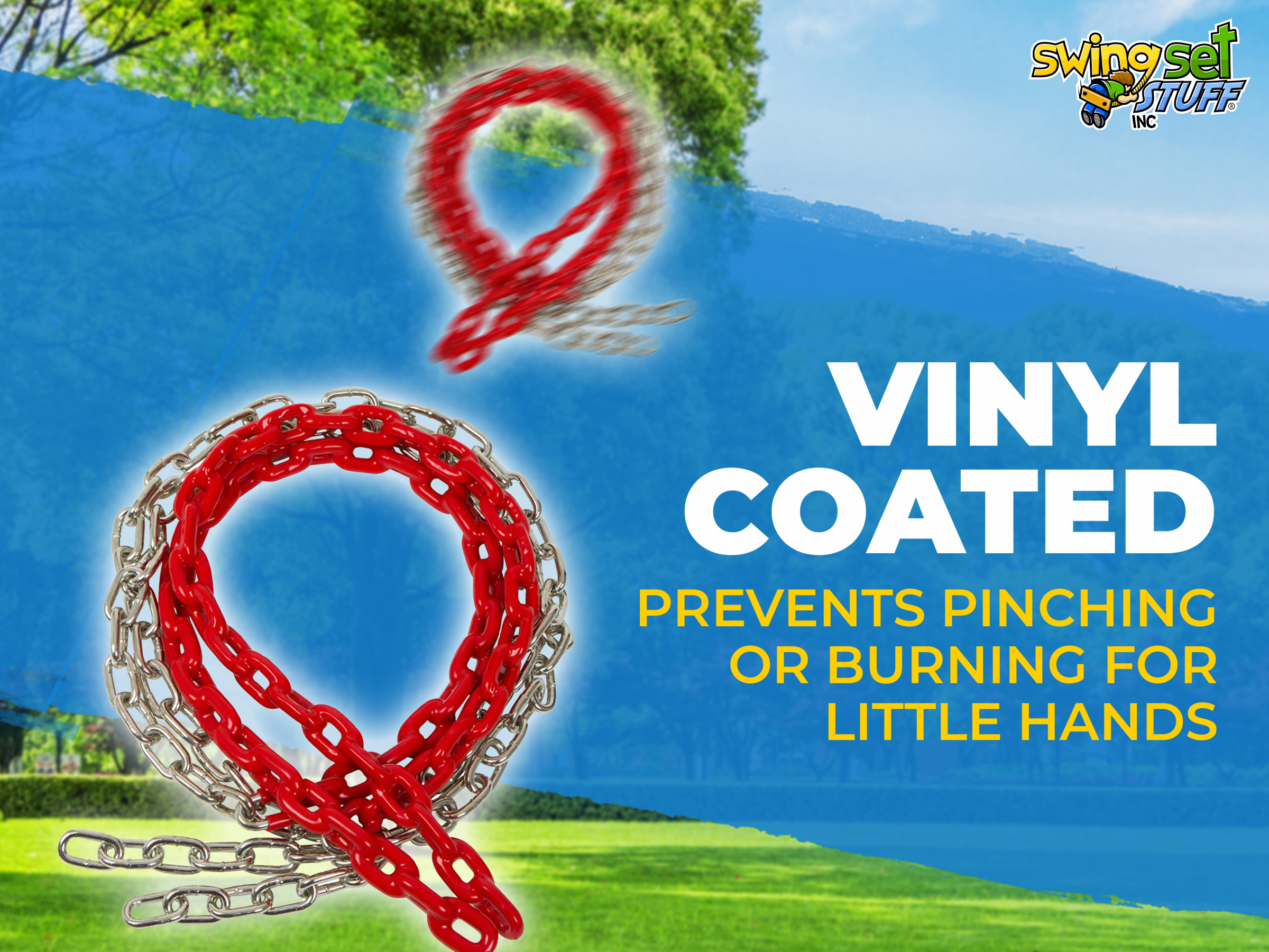 This is for a pair of 8 1/2ft coated Red swing chain. The coating covers 2 ft. 6 in. of the chain. Please visit our Ebay store for additional colors and products. Chain is 3/16" in diameter.