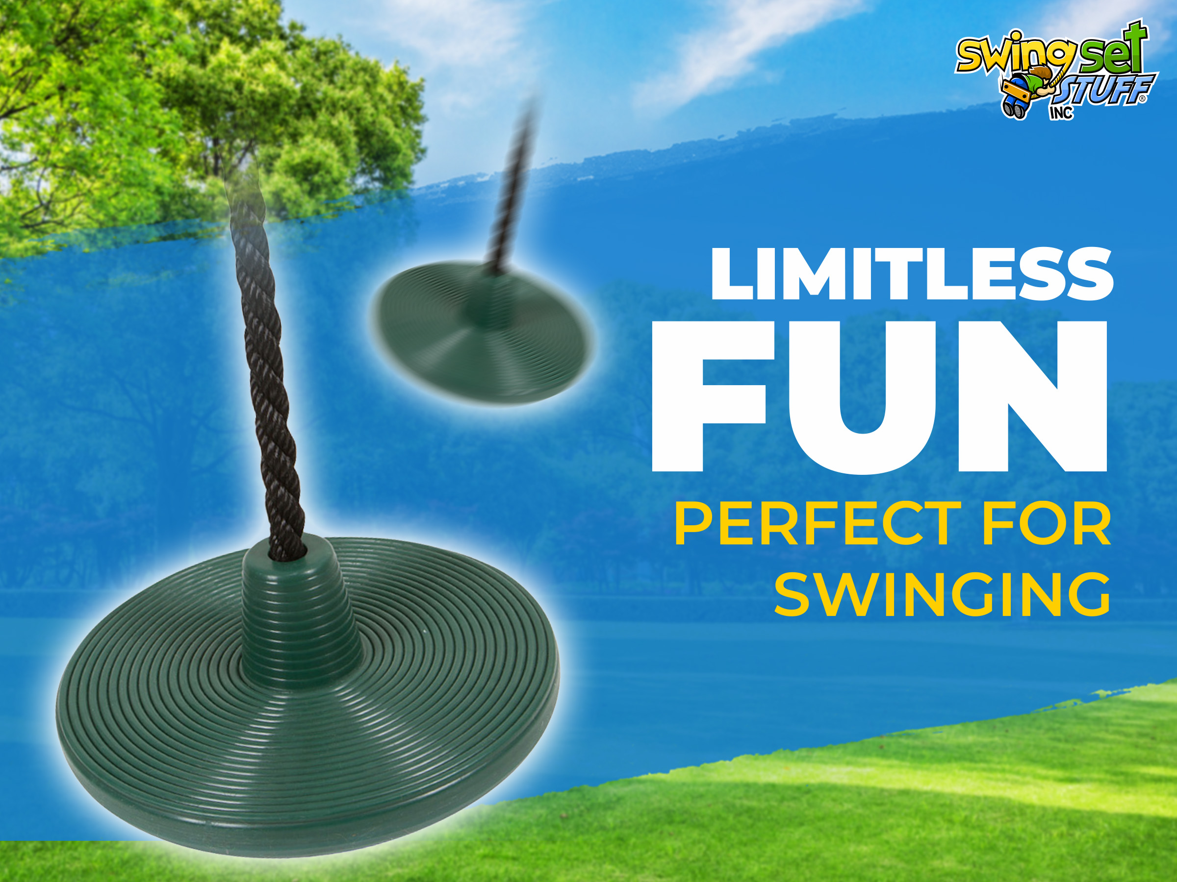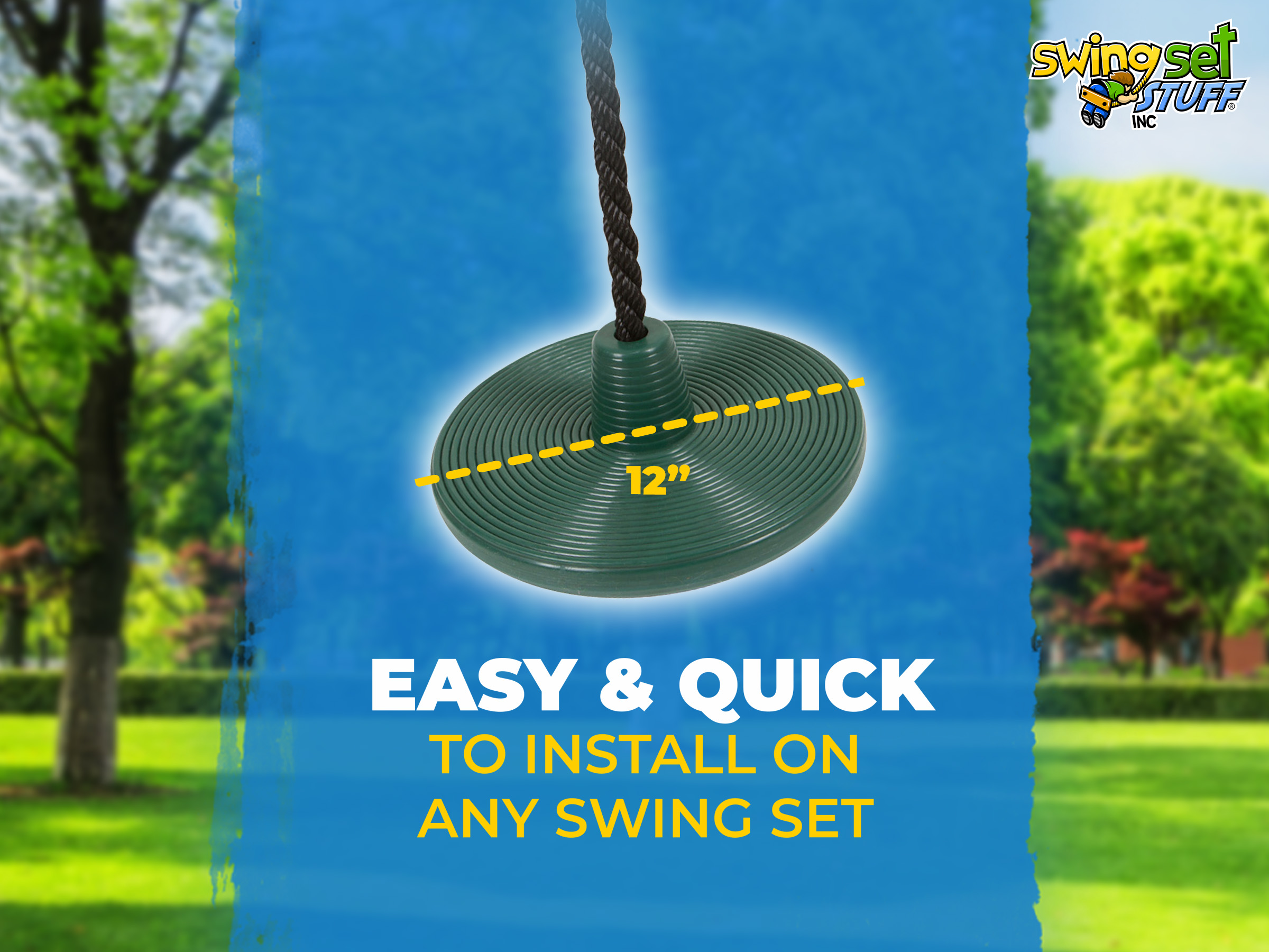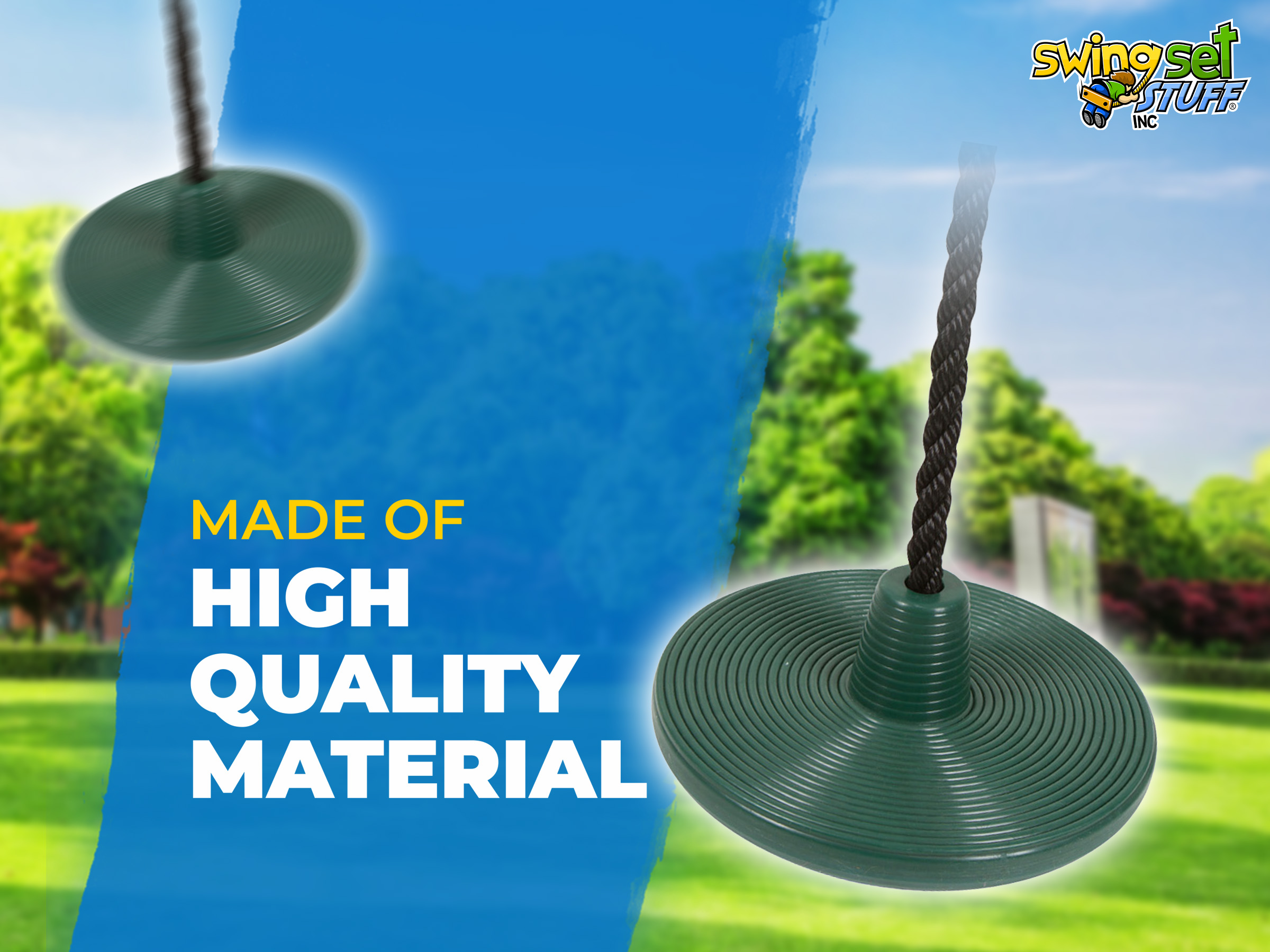 This is a cyclone swing seat molded from high density polyethylene that comes with 8 foot of rope. The rope is 3/4" in diameter and the seat is 11 3/4" in diameter.