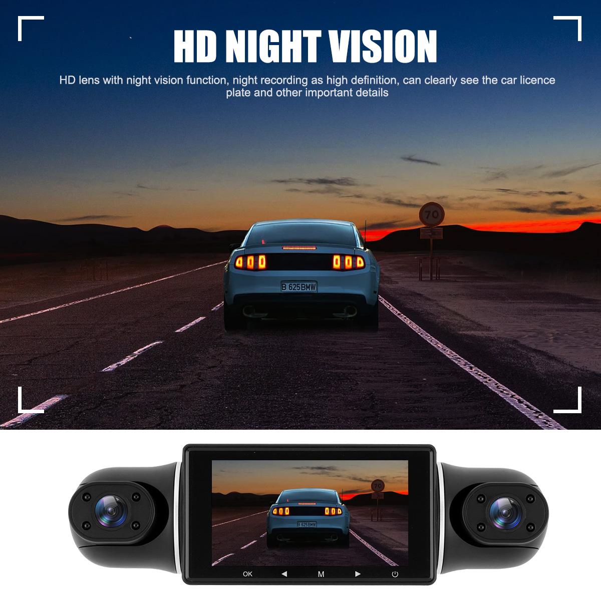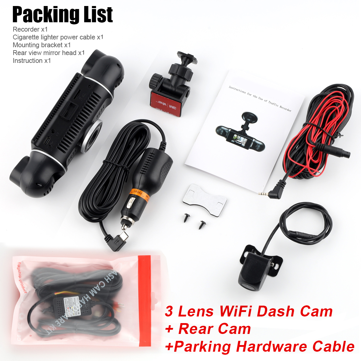 Main functions: four way lens, large angle of view, night vision shooting, gravity sensing, parking monitoring, 3-inch screen