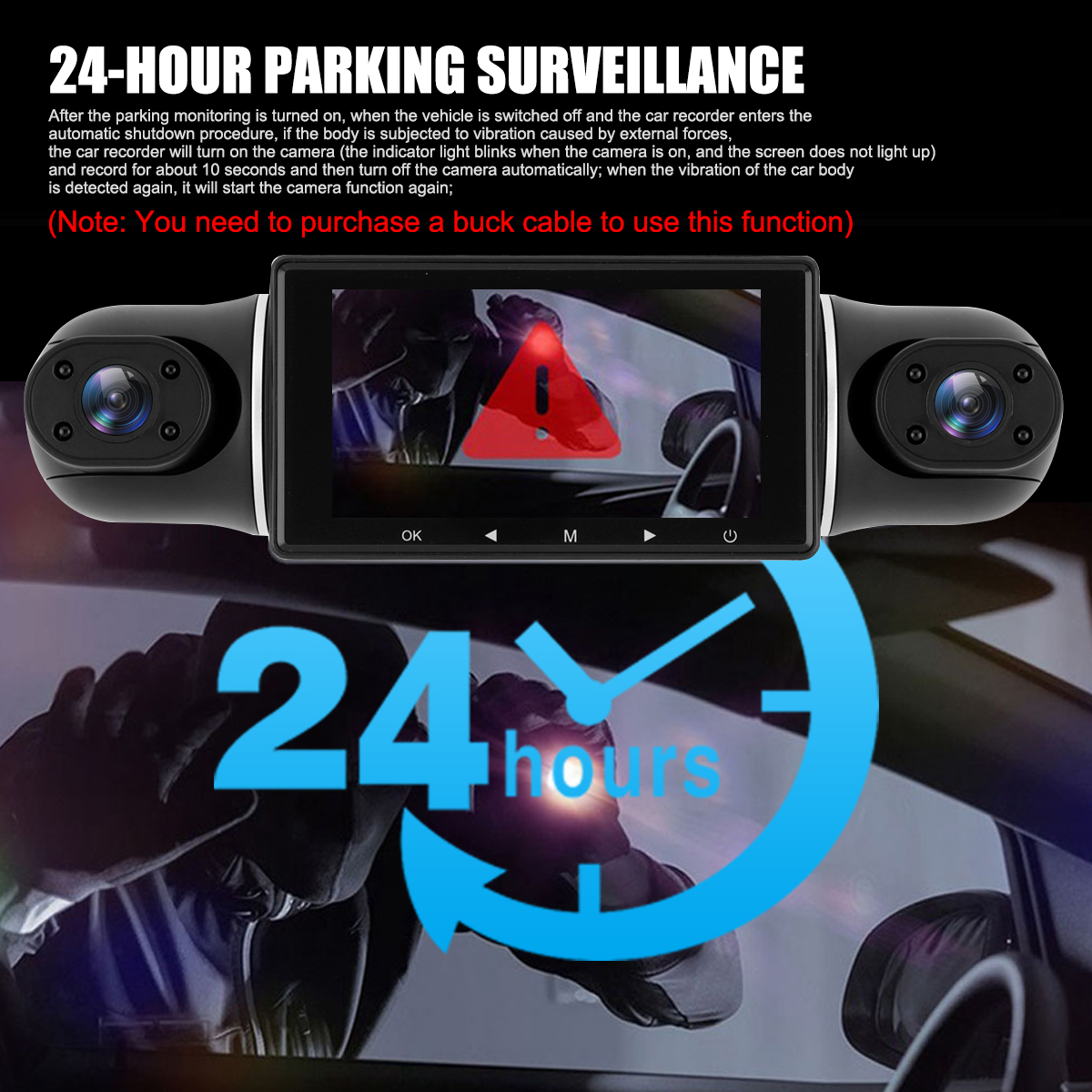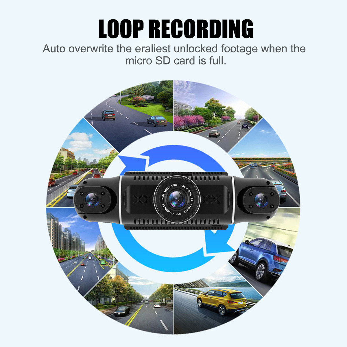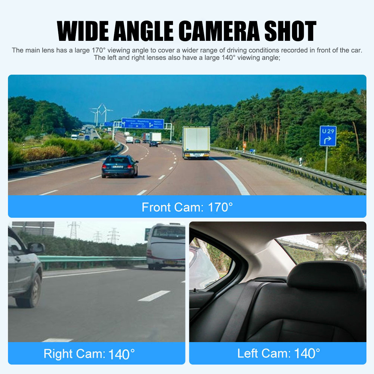 2. [170 ° Ultra wide angle lens]: the main lens has a 170 ° super large viewing angle, which can cover a wider range of driving situation recording in front of the car. The left and right lenses also have a 140 ° angle of view;
