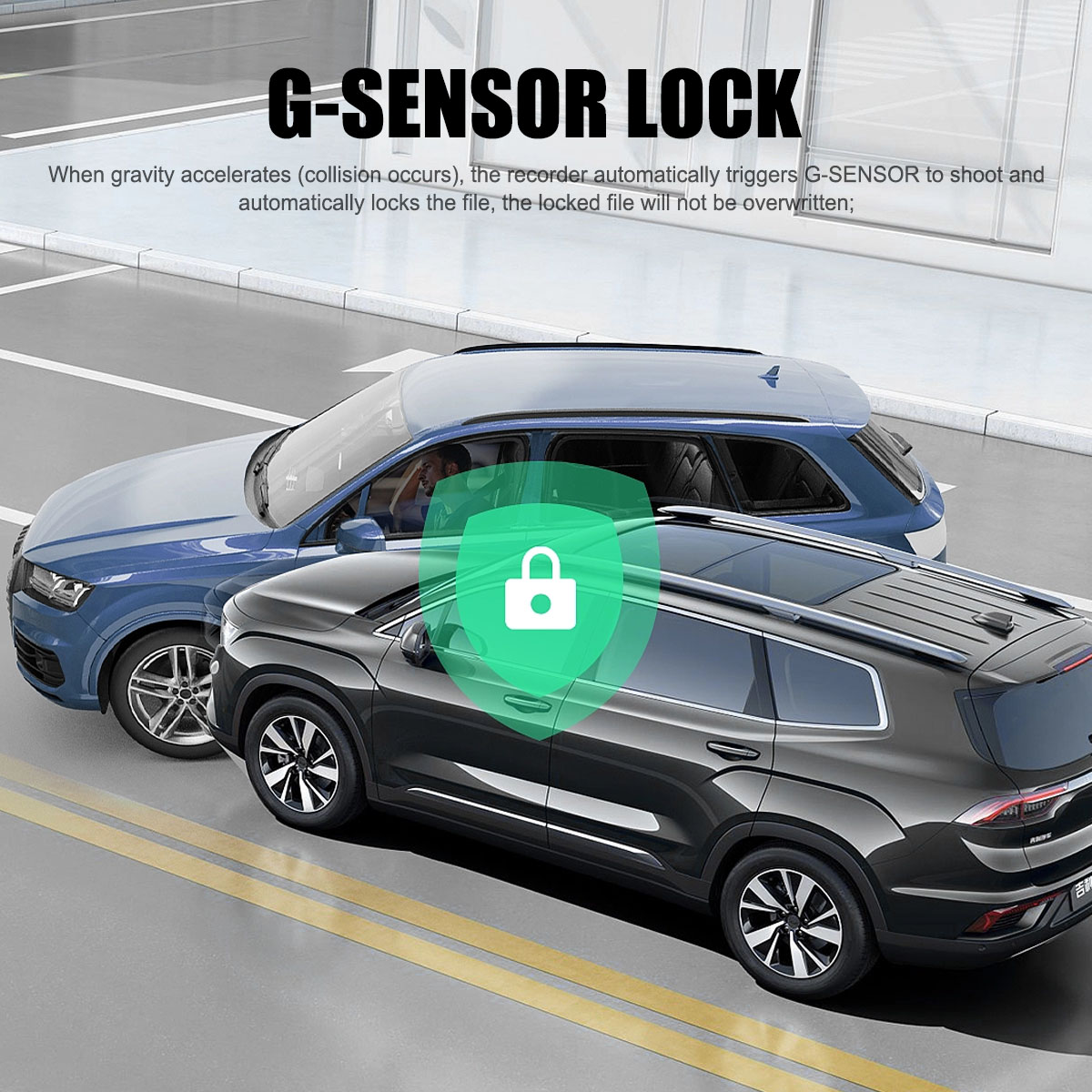 5. [G-SENSOR gravity sensing function]: when gravity accelerates (collision occurs), the recorder will automatically trigger G-SENSOR to shoot and automatically lock the file, and the locked file will not be overwritten;