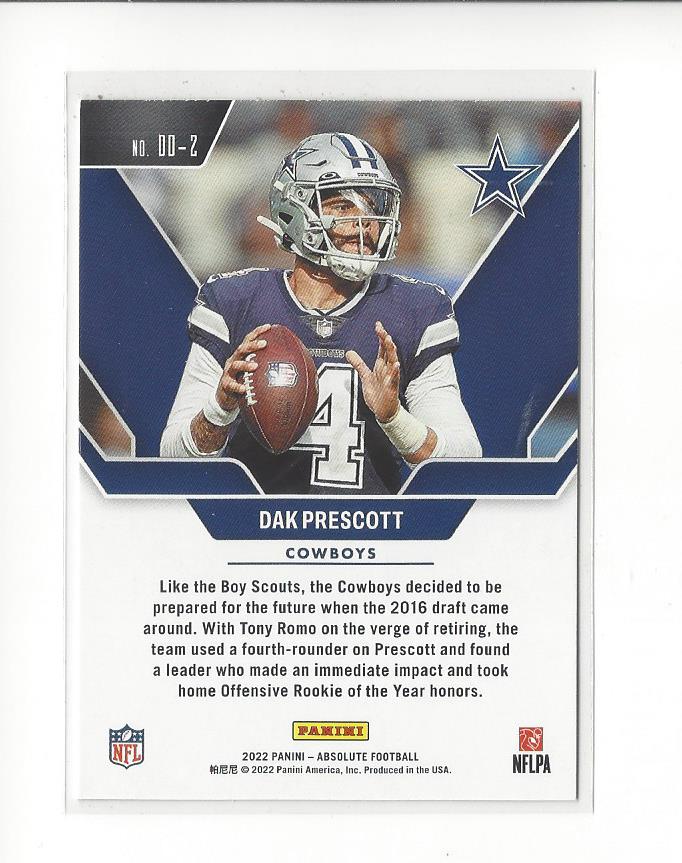 2022 Absolute Draft Diamonds #2 Dak Prescott Cowboys
