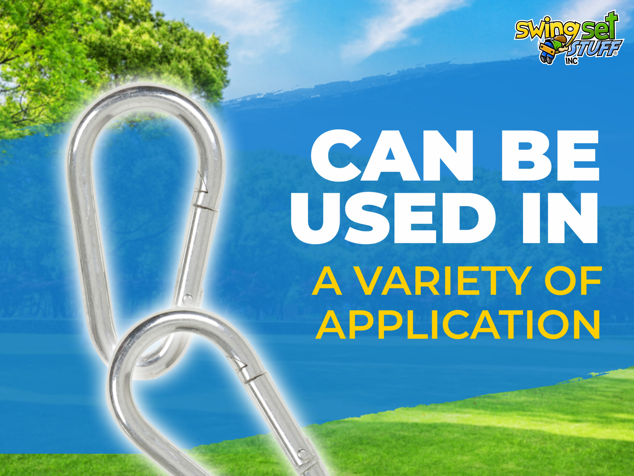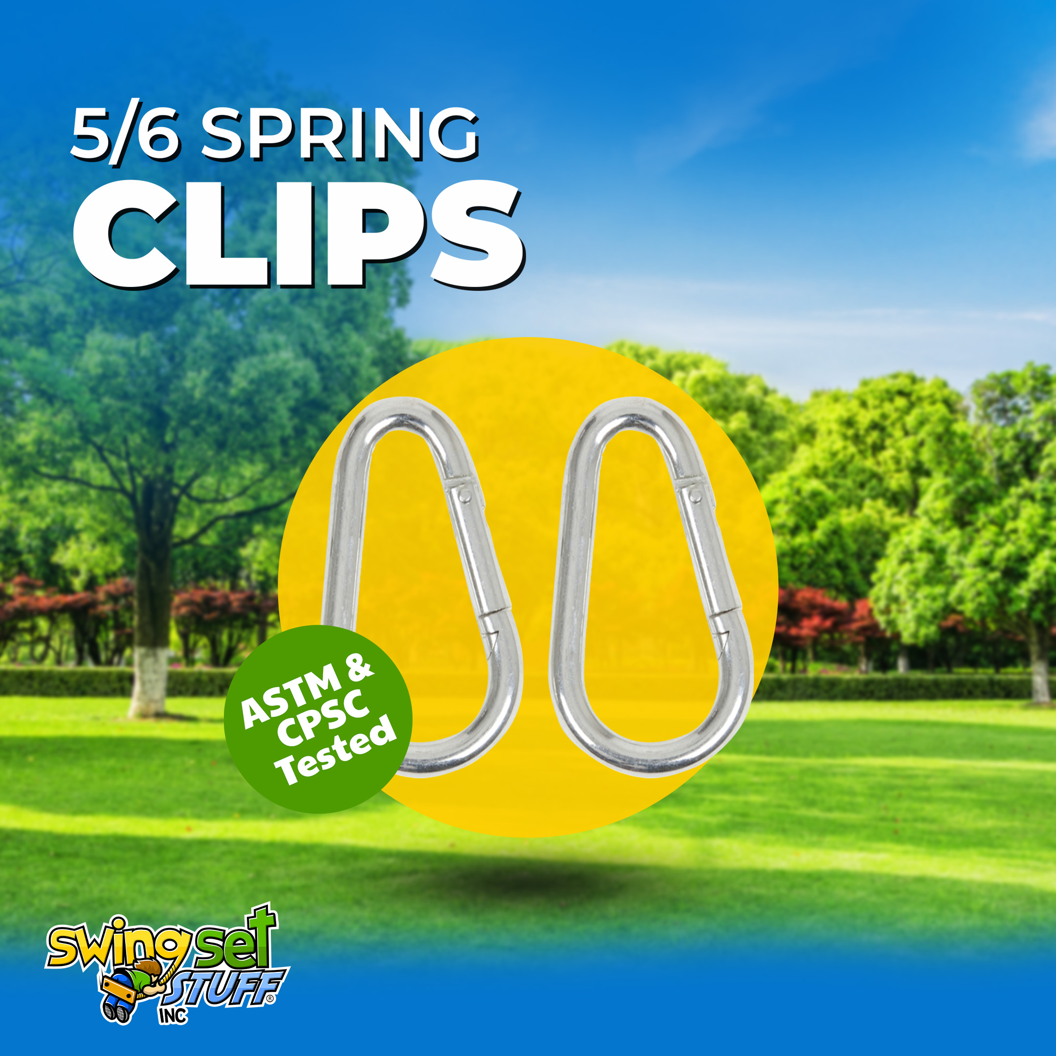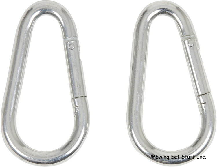 These 5/16 Spring clips can be used to attach your swings to swing hangers. They are an easy to use carabineer type clip, Sold in Pairs.