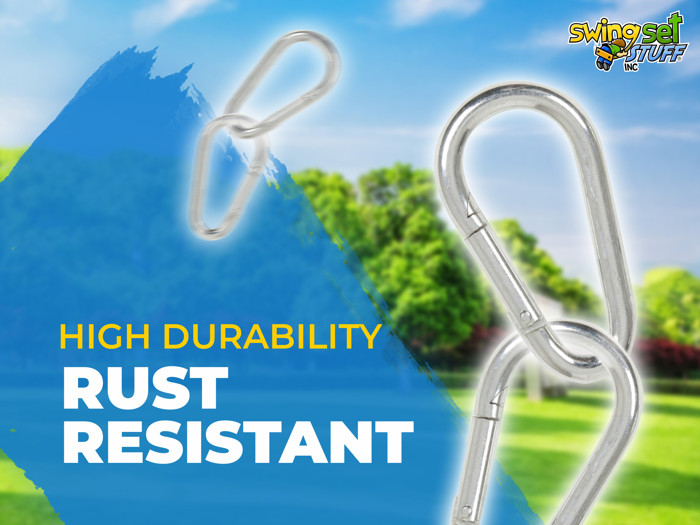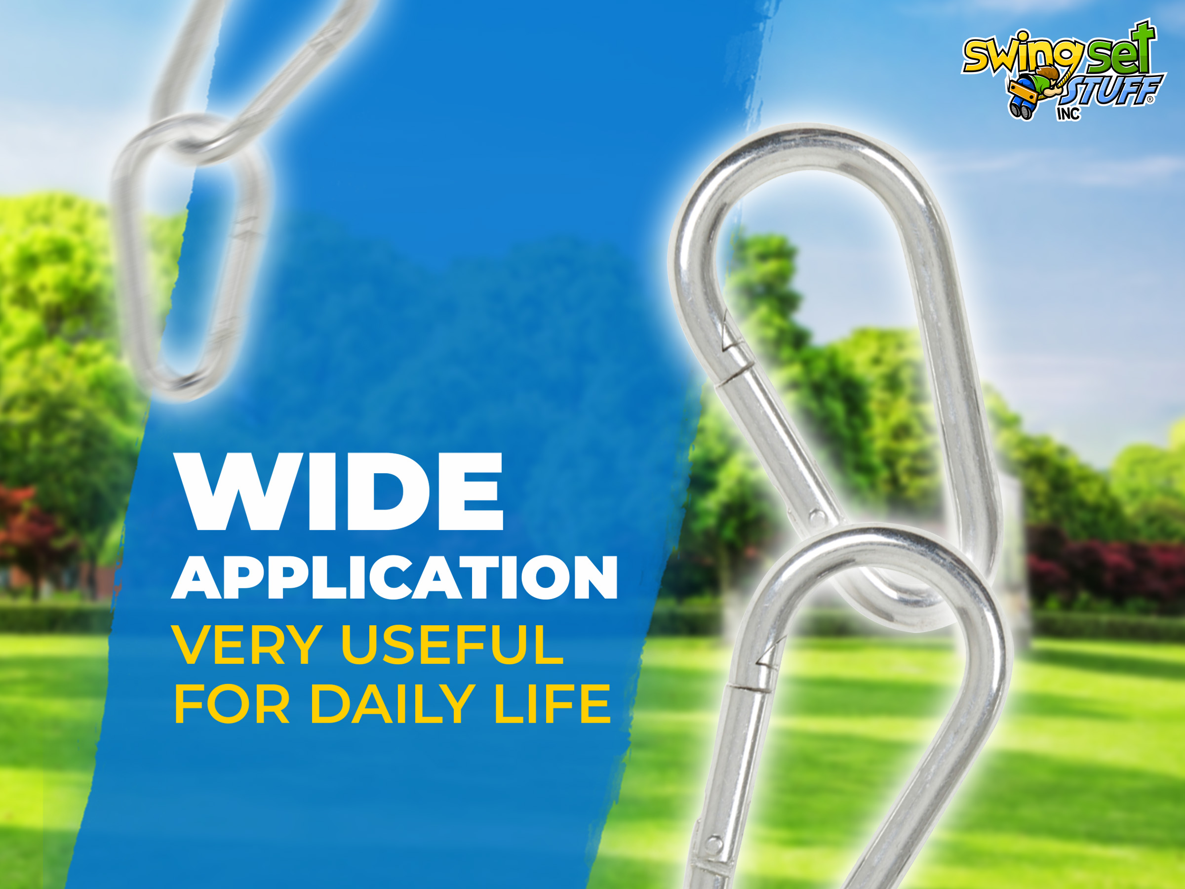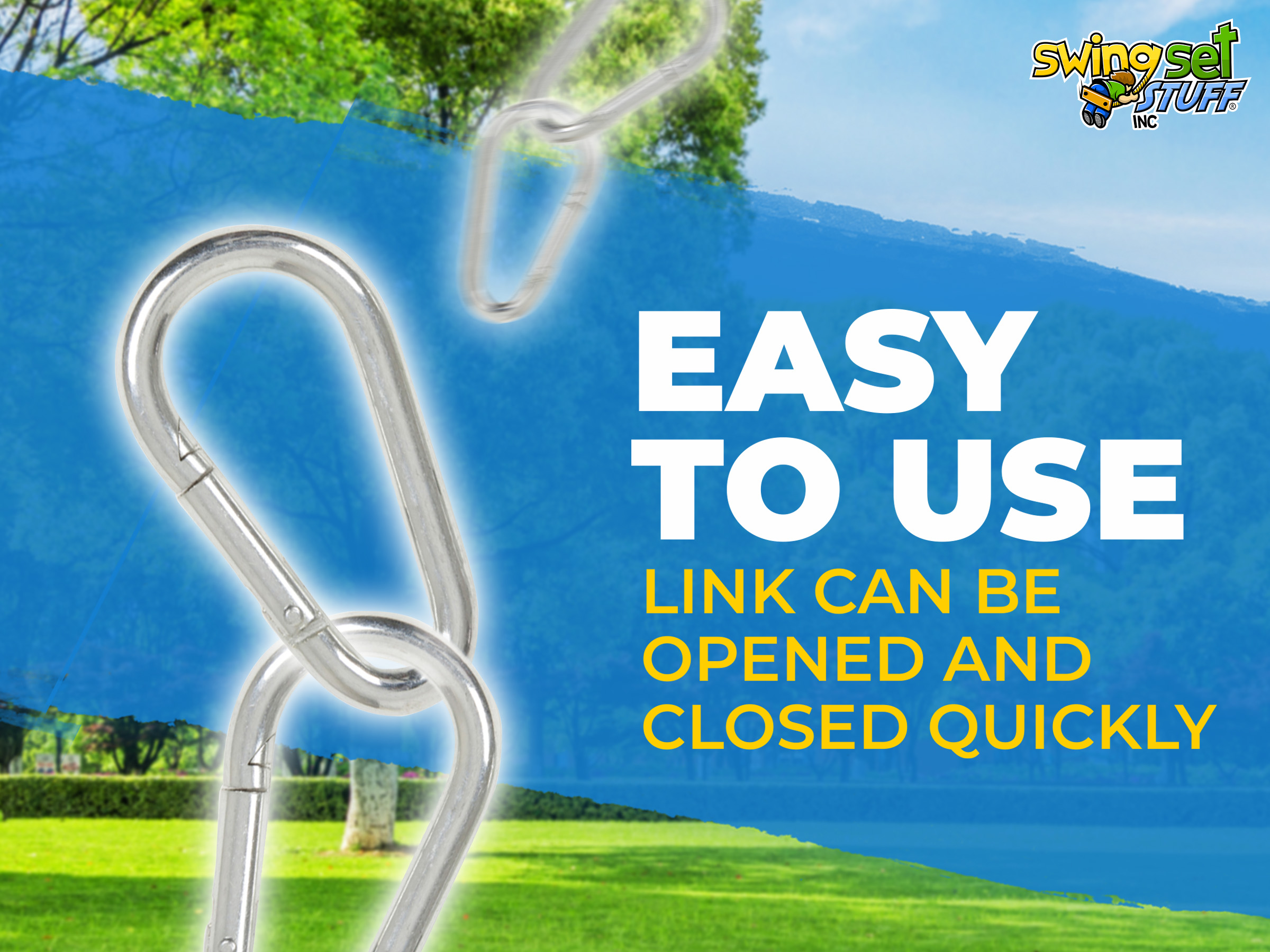 These 5/16 Spring clips can be used to attach your swings to swing hangers. They are an easy to use carabineer type clip, Sold in Pairs.