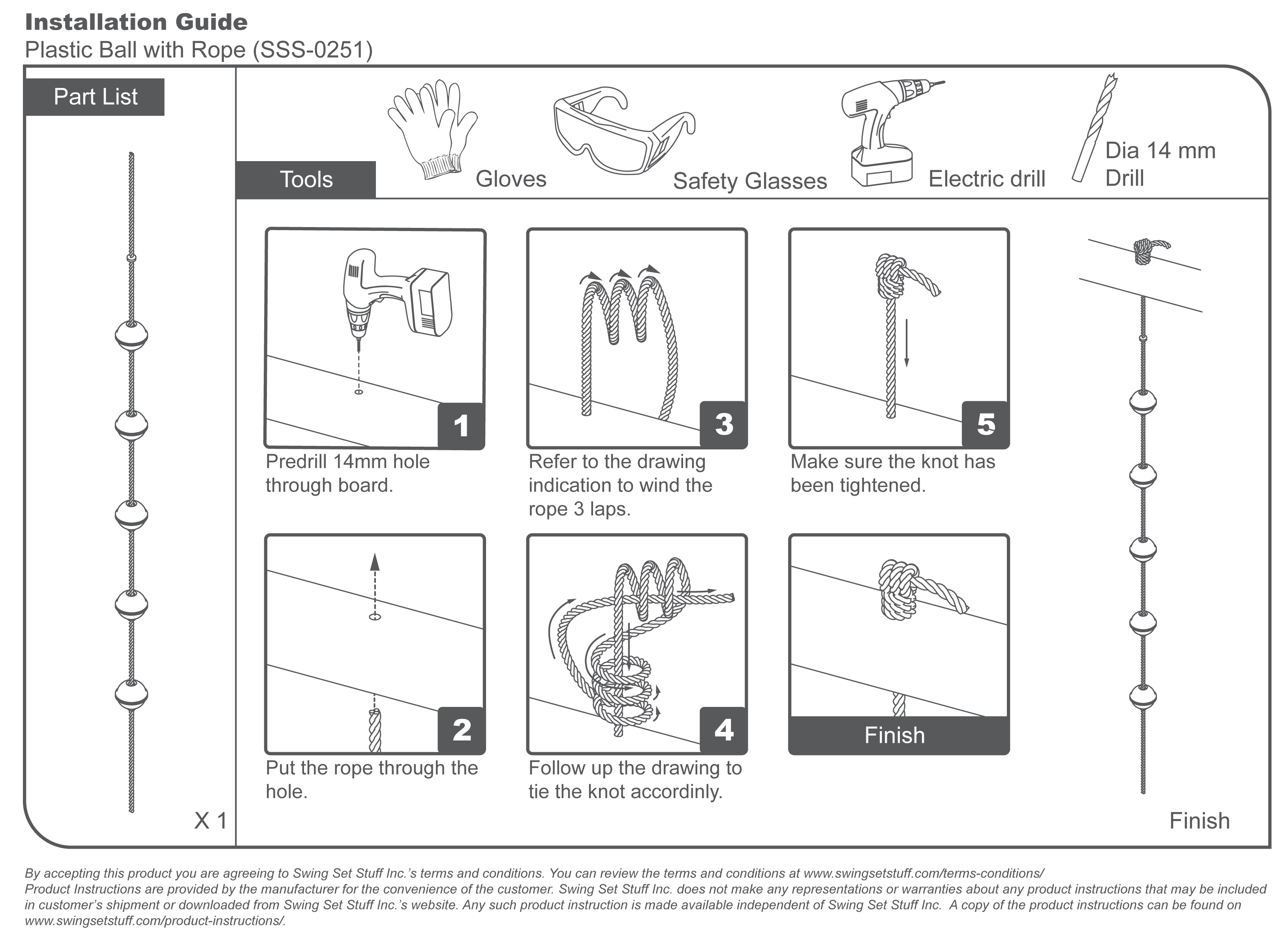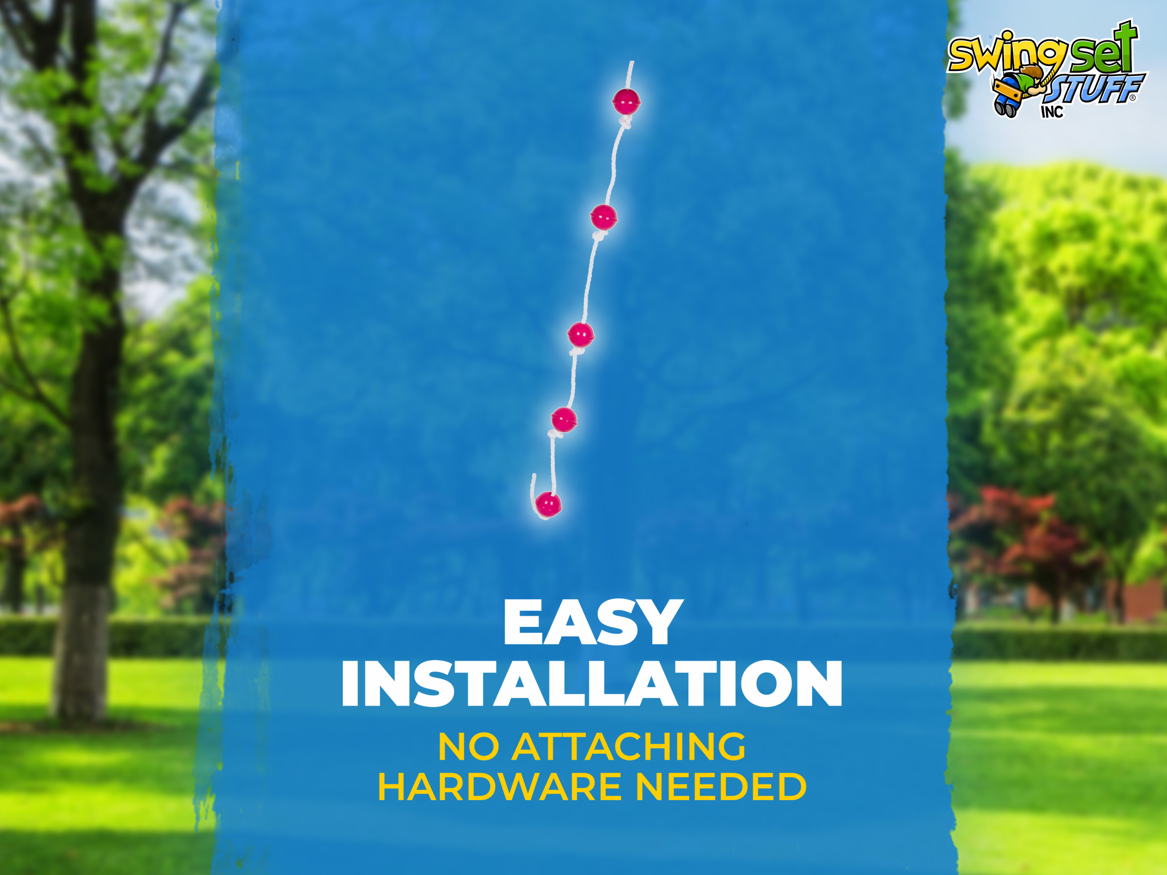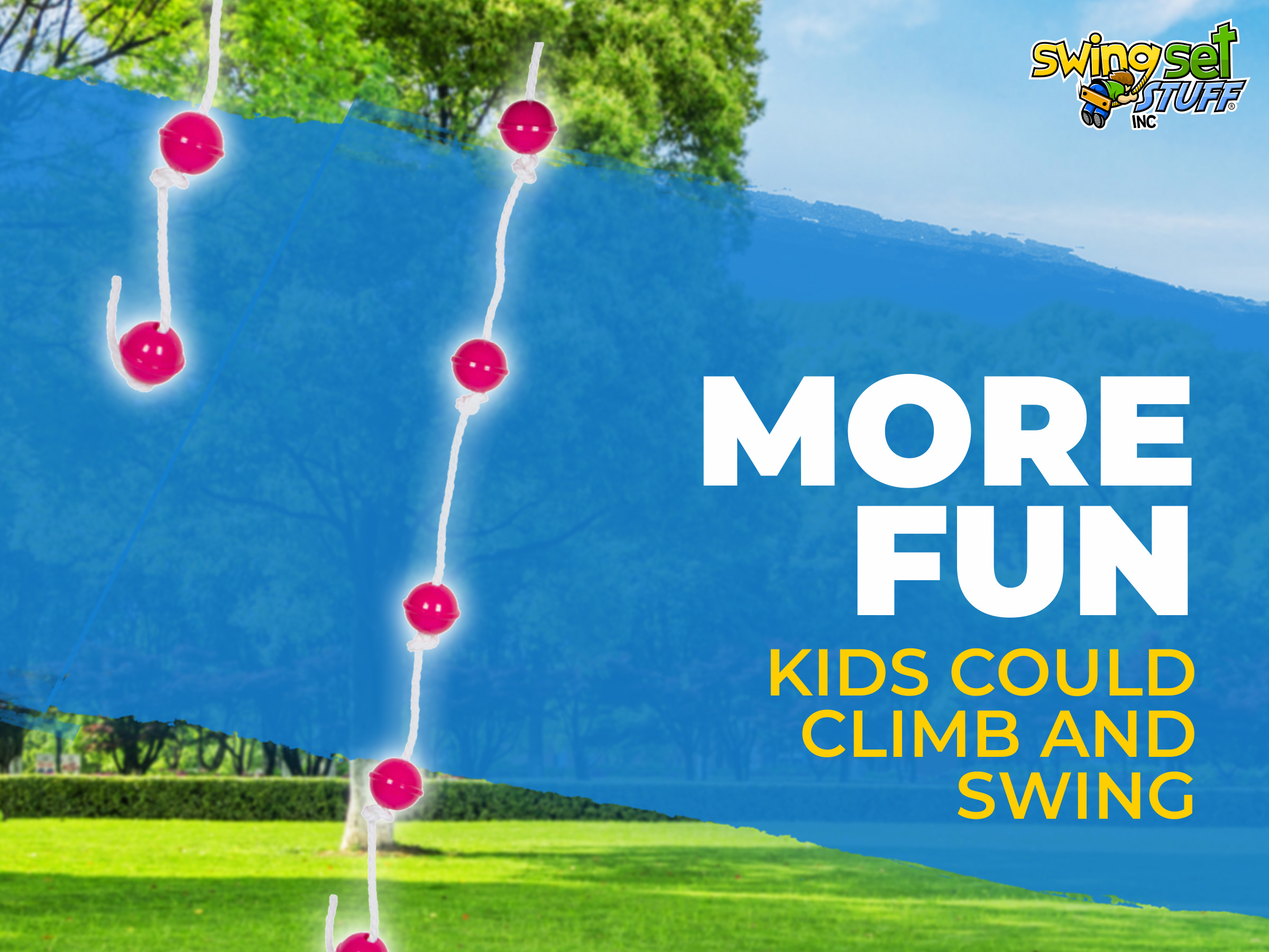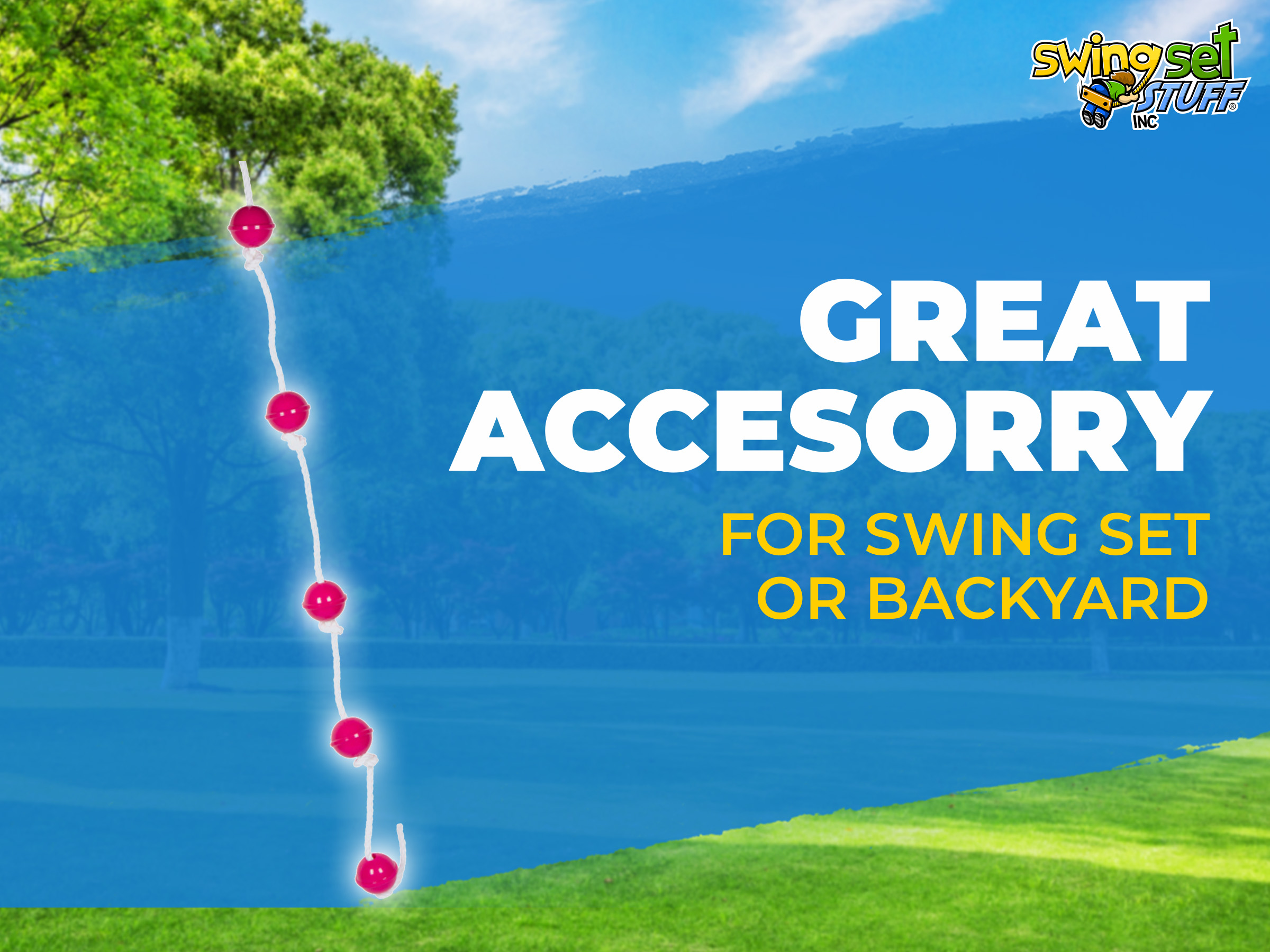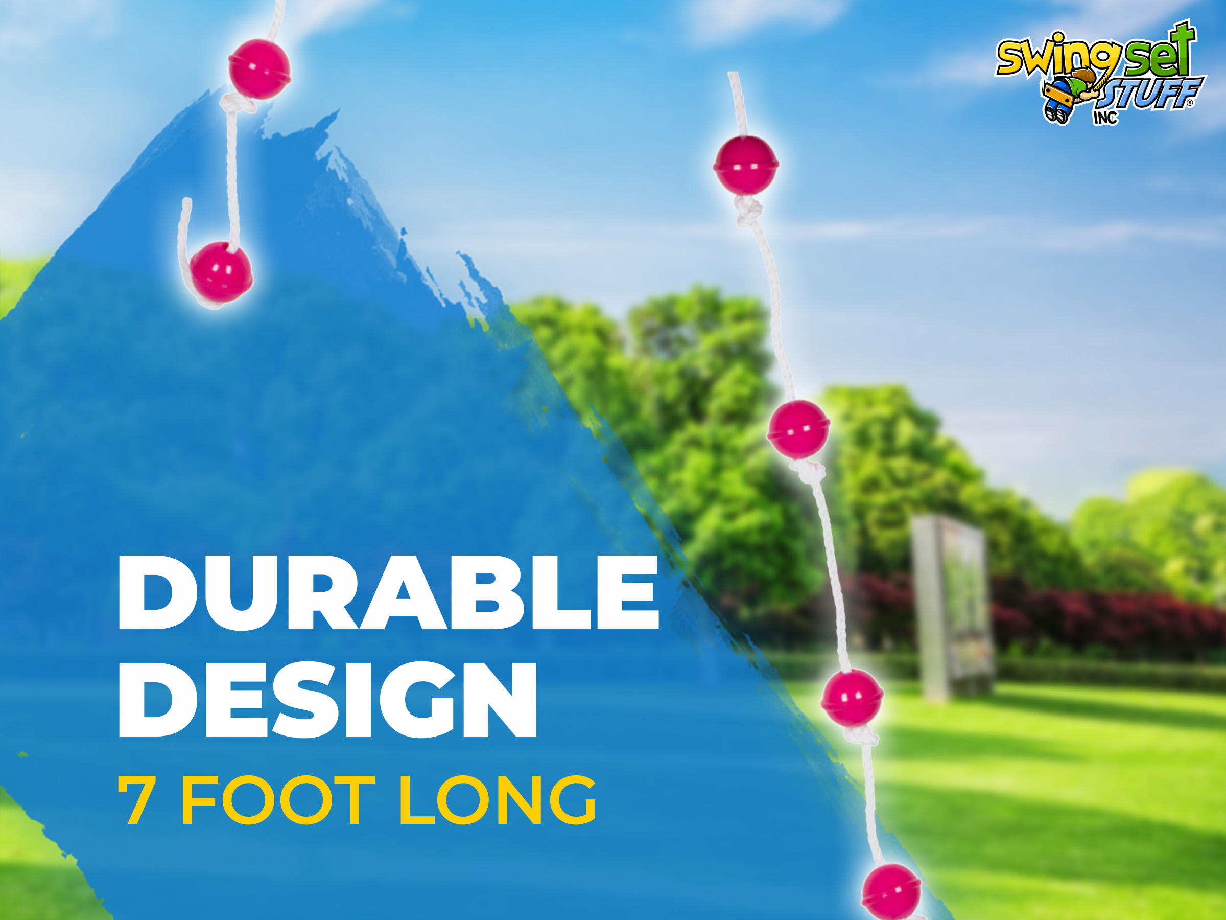 This Swing Set Stuff Inc. Pink Ball Rope will be a great addition to your swing set or backyard. The rope is 7' Long and has a total of 5 balls. Each ball is 3.5" in diameter. There is 1' between each ball. Please visit our ebay store for additional colors and products.