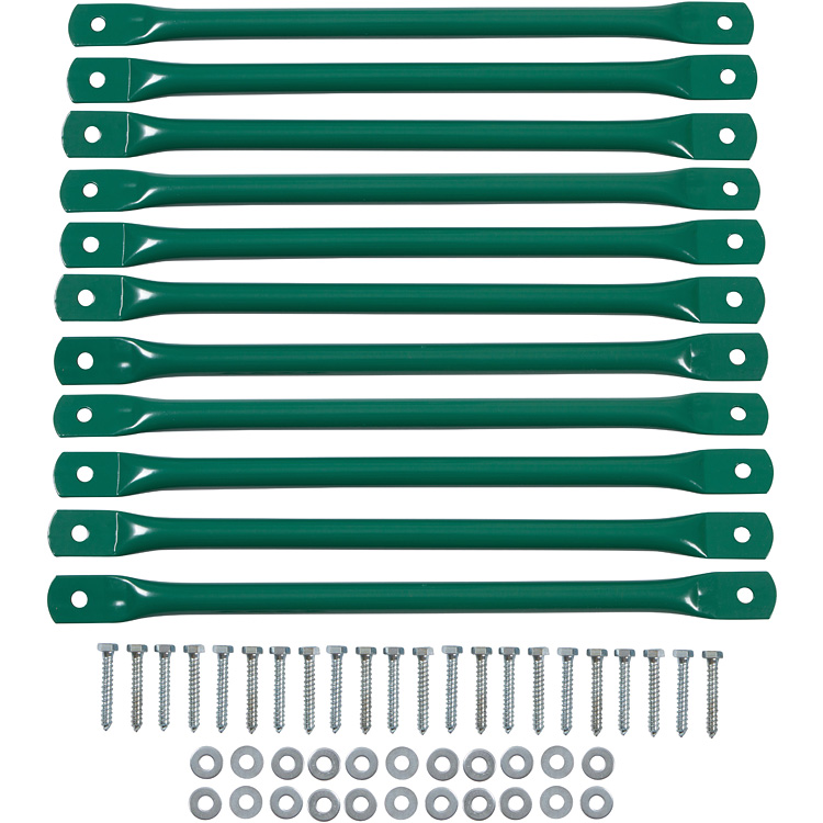 Set of 11 steel monkey bars. Green only. See other listings for those sold per piece. This is for 11 monkey bars with hardware.