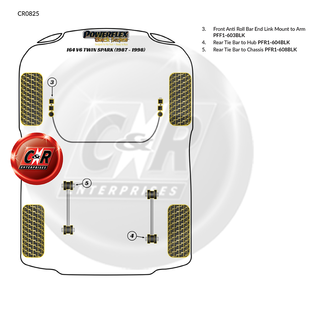 Powerflex schwarze vordere Stabilisator-Endgelenk-Montage an Armbuchsen für: Alfa Romeo 164 V6 & Twin Spark (1987–1998) PFF1-603BLK