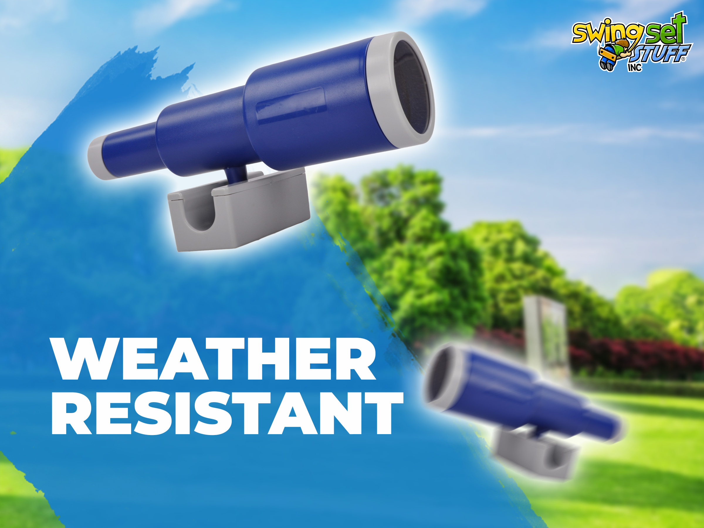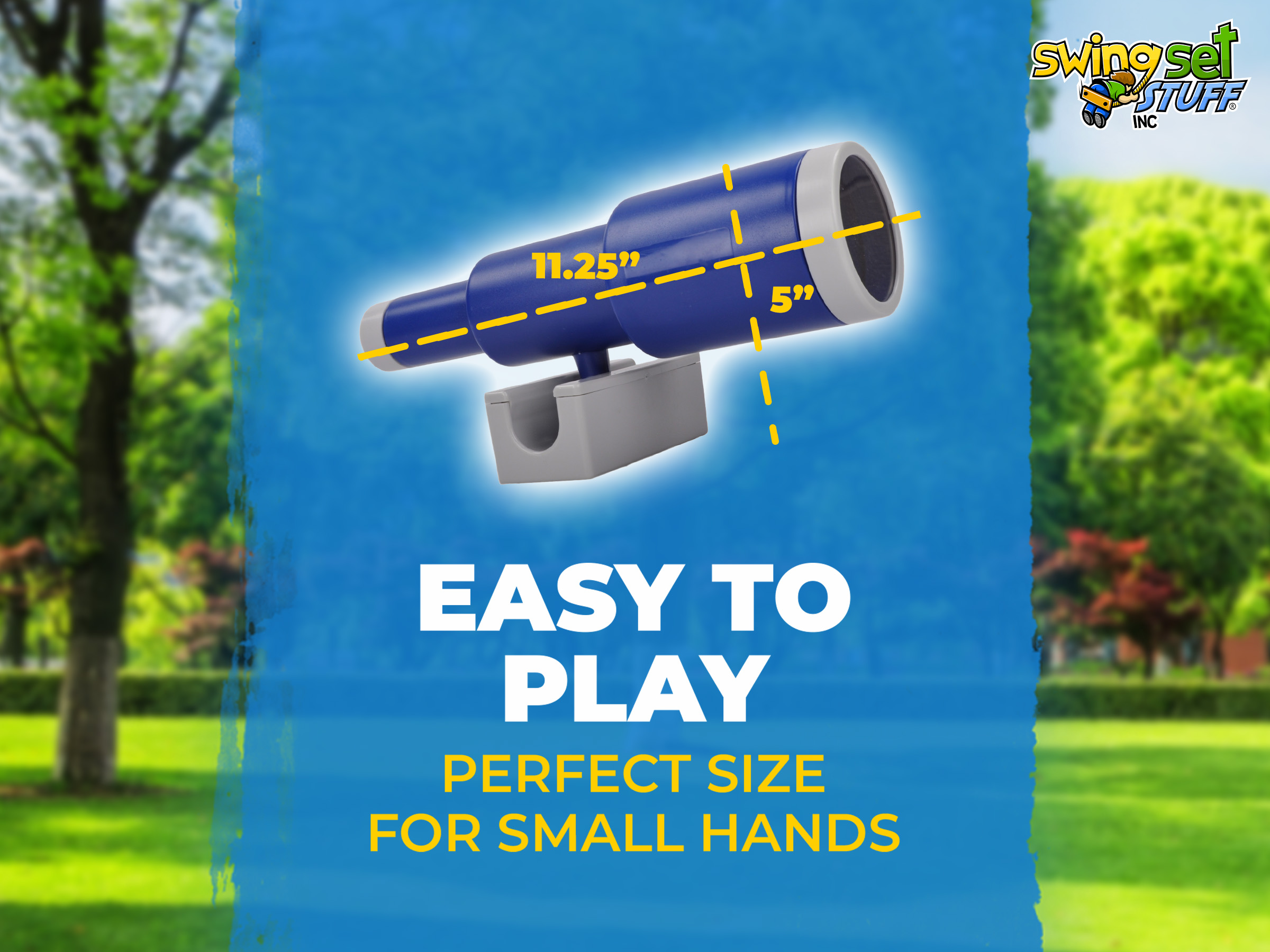 Swing Set Stuff's Monocular telescope is a great asset to any playground. Bright colors, up and down motion, and the ability to swivel make this telescope a much needed accessory for your playground. Whether you purchase this item by itself or with the monocular periscope, children will sure enjoy this item.