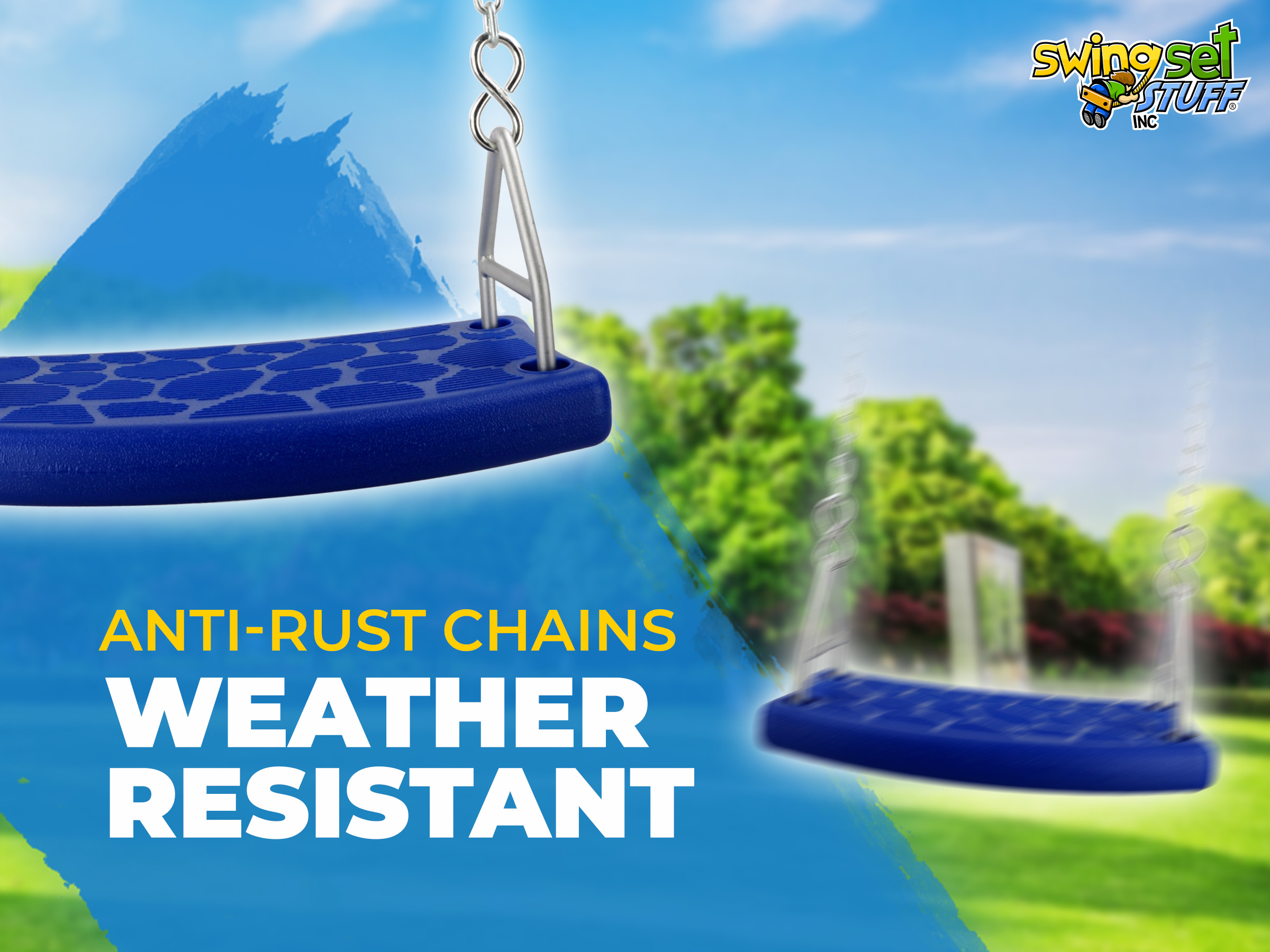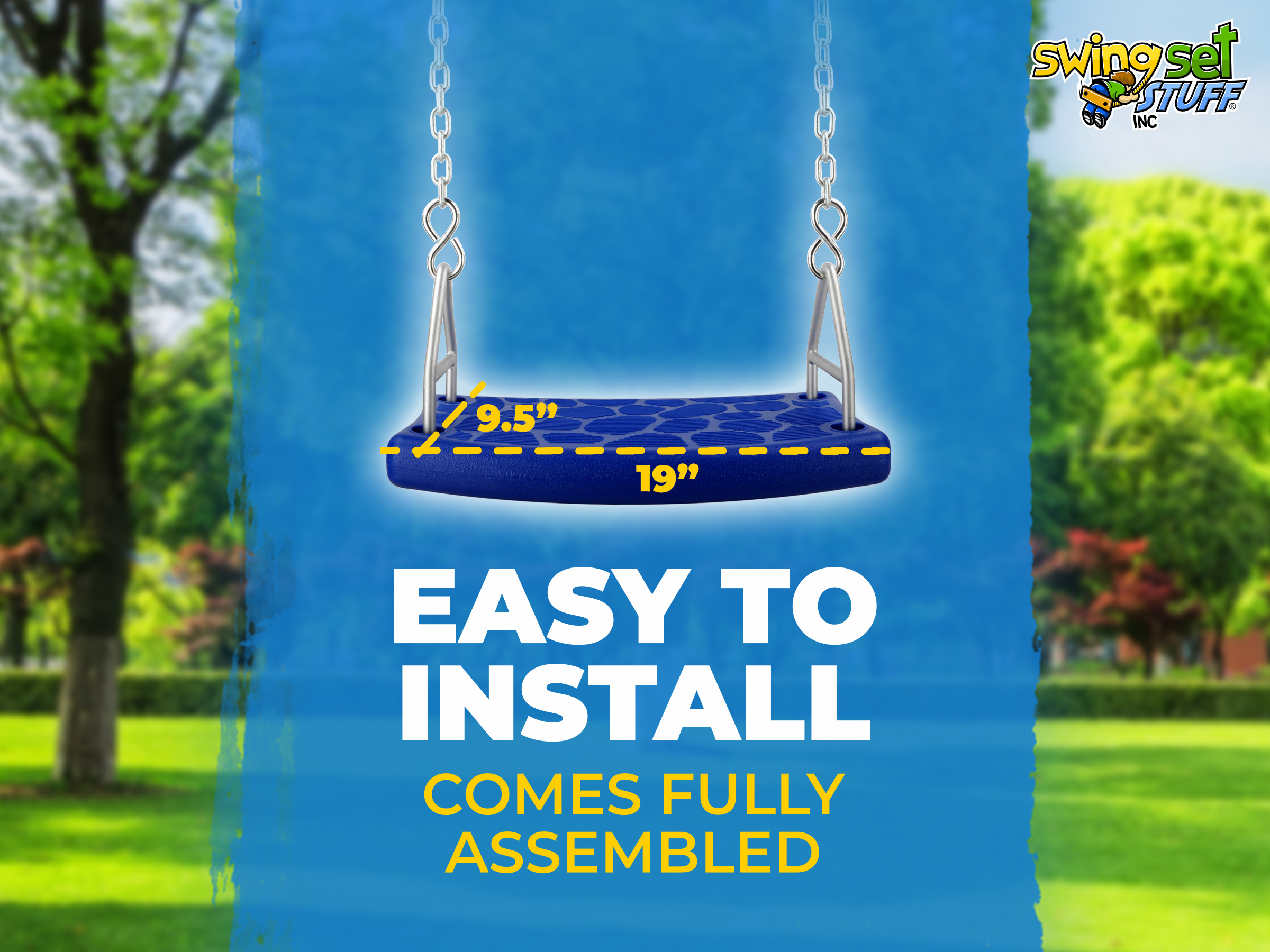 This is our residential flat seat complete with 5.5ft uncoated chain, S-hooks and Clips to attach to your swing hangers (swing hangers not included). The chain is 3/16" under coating.