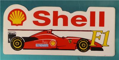 Shell oil Ferrari F1 adhesive 4" long official sticker decal from Monza event. Ship as many decal stickers as you want for just $4.99 in the USA.