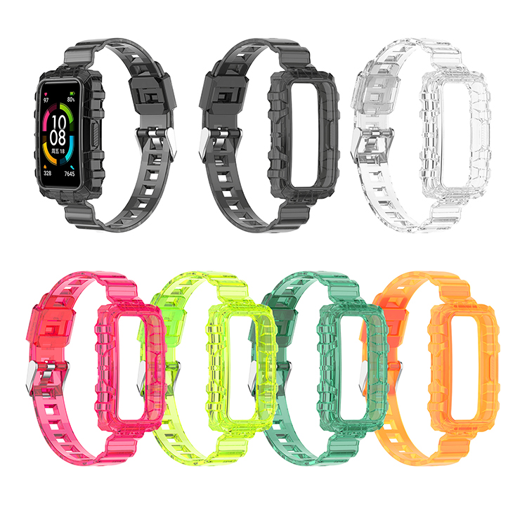 Soft TPU Glacier Armor Transparent Watch Strap Band Replacement Integrated Watchband for Huawei Band 7/Huawei Band 6 Pro/Huawei Band 6/Honor Band 6 Watch Accessories