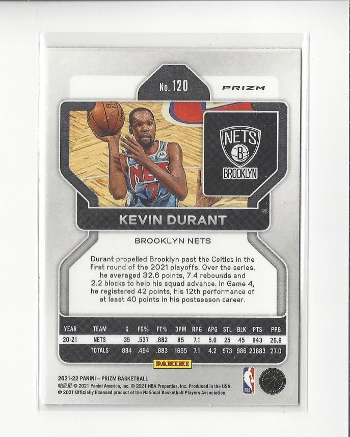 2021-22 Panini Prizm Prizms Purple Wave #120 Kevin Durant Nets