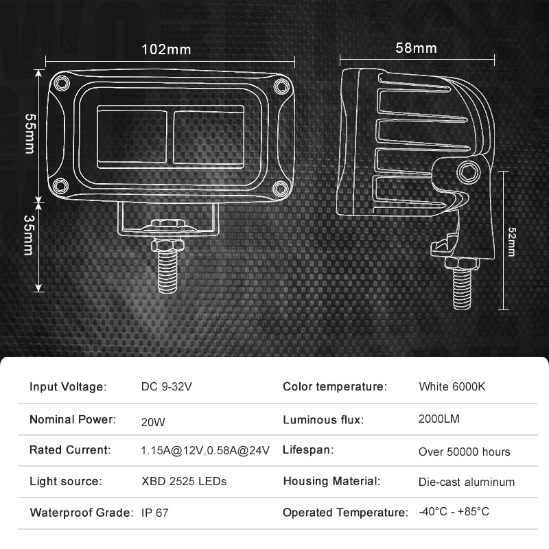 * Better Heat Dissipation: Made of thickened diecast aluminum heat sinks, maximizes surface area for optimal cooling enhance the led work light long lifespan up to 50,000 hours.