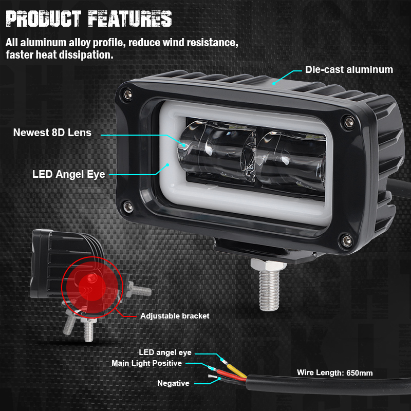 Item Type: 8D Lens LED Work Light with Angel Eye Halo Ring
