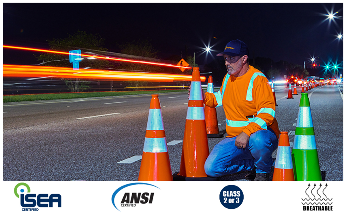 The OrangeGear Class 2 short-sleeved safety t-shirt features a breathable polyester mesh construction and a classic crew neck design. This t-shirt is not only durable and comfortable but also machine-washable for easy care. It includes two reflective safety stripes positioned on the chest and back, along with an additional stripe encircling the torso. These stripes are applied using a heat transfer method, ensuring a smooth finish without any stitching, which enhances the t-shirt's regular appearance. Additionally, it comes with a chest pocket that does not have a reflective strip. Each t-shirt meets the ANSI/ISEA 107-2020 certification standards.