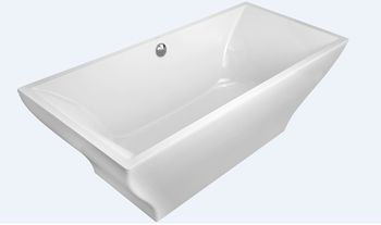 FREISTEHENDE Quaryl Badewanne DuoWanne 180x80cm - Mittelablauf - inklusive Ab- und Überlaufgarnitur - Farbe weiß 2 Teile = Badewanne + Schürze (Verkleidung) aus Quaryl