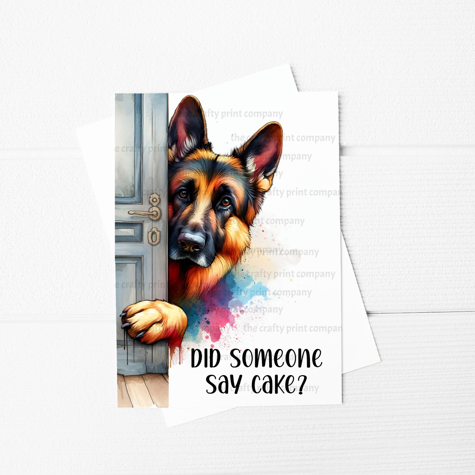 Did someone say cake? A5 Greeting Card with a Peeking German Shepherd design on it