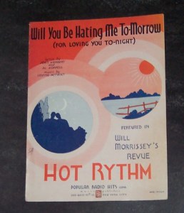 This is a good to very good sheet music titled "Will You Be Hating Me To-Morrow" . Written by Jean Herbert, Al Koppell & Irving Actman . 1930