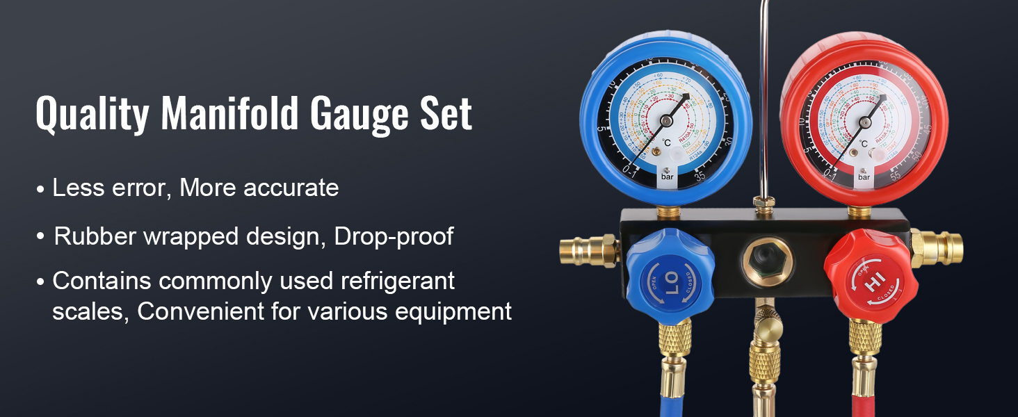 The manifold gauge contains the commonly used refrigerant scale, which is convenient for measuring various equipment.