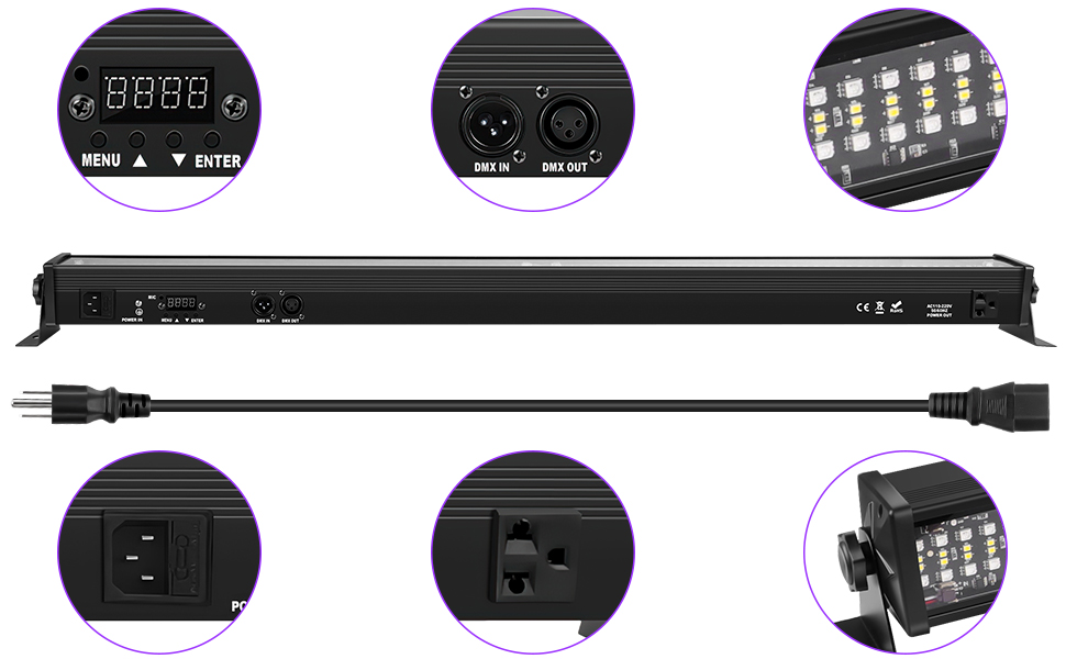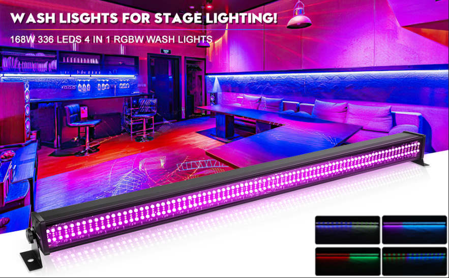 1. Consisting of 168PCS 0.5W RGB SMD 5050 LEDs and 168PCS 0.5W 5730 cold white light LEDs, it provides massive light output,so it is specifically designed for large stages, nightclubs, live events and touring.