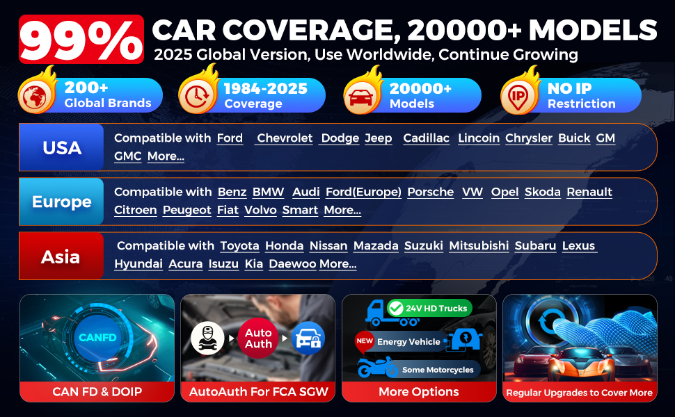Für Brasilien Fiat, Für Brasilien GM, Für Chrysler, Für Dodge, Für Jeep, Für GM, für Buick, Für Cadillac, Für Chevrolet, Für Ford, Für ChinaFord, Für Lincoln, Für EuropeanFord
