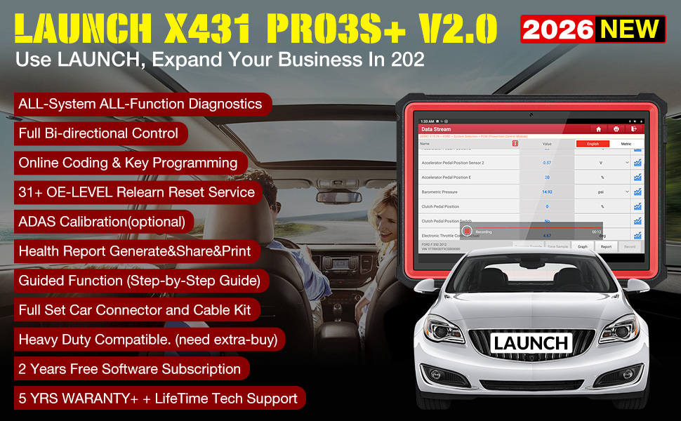 Elite-Version 2026: Neue erweiterte OEM-Funktionen hinzufügen: Aktualisieren Sie ab sofort Ihr X431 PRO3S+ auf V 7.00.012, um die Topologie-Mapping-Funktion zu erhalten. Als beliebtester LAUNCH X431-Scanner wurde X431 PRO3S+ Pro Elite von den Amazon-Redakteuren als „Bestes professionelles Diagnosetool“ empfohlen! KOSTENLOSE VAG-Führungsfunktion (kompatibel mit VW, AUDI, SKODA, SEAT); AutoAuth für FCA SGW (kostenlos); Kompatibel mit HD-Modul, unterstützt schwere 24-V-Diesel-Lkw; ADAS mobile/ADAS pro führt die ADAS-Kalibrierung durch.