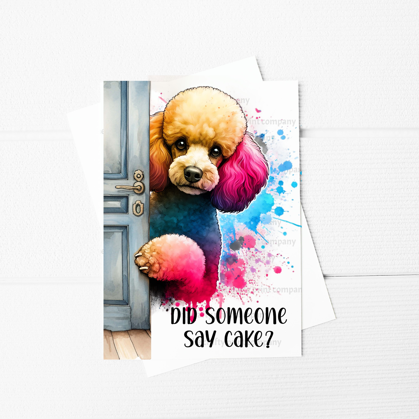 Did someone say cake? A5 Greeting Card with a Peeking Poodle design on it